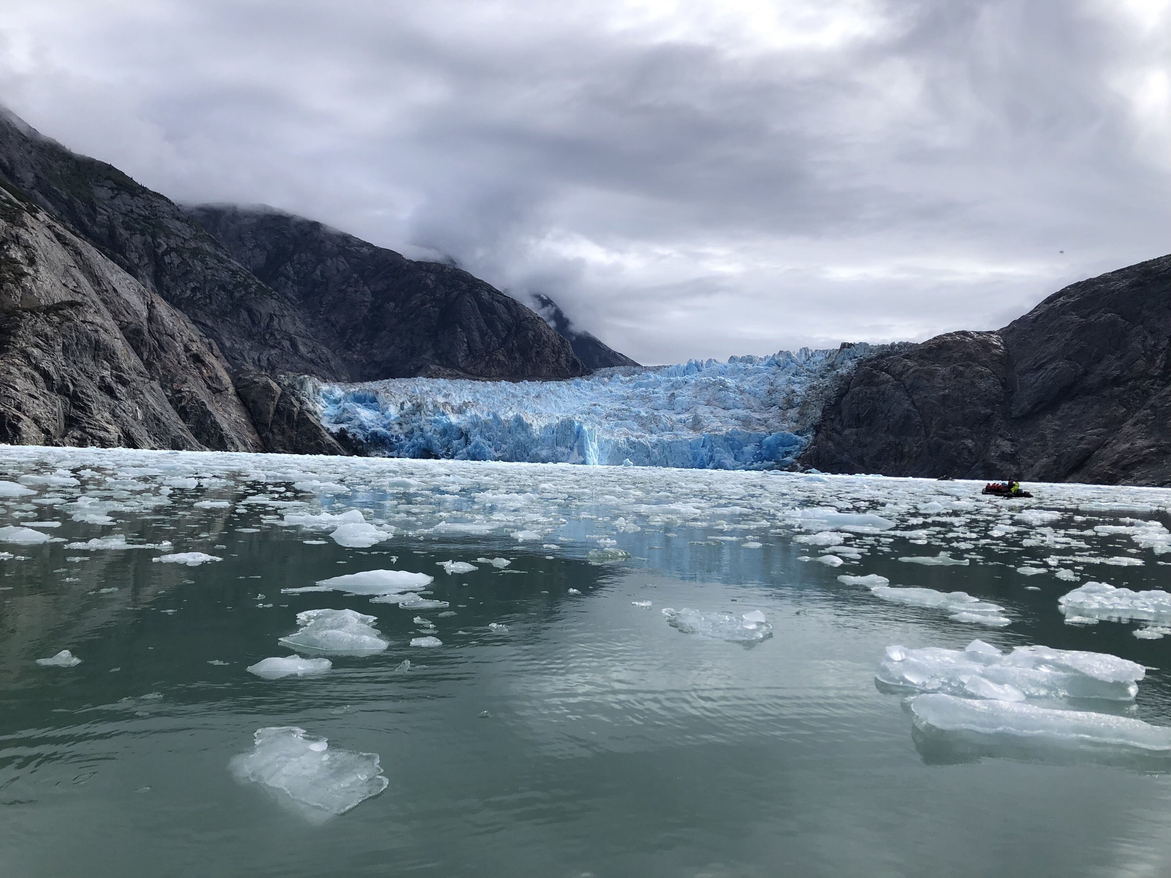 Always a crowd favorite, Zodiac cruising through Tracy Arm Fjord. Having to bob and weave through growlers, bergy bits, and icebergs, leaves guests with wonderment. The sense of scale felt next to a massive iceberg is only dwarfed by the glacier itself. The amount of ice floating nearer the face of the glacier inspired hope of recent activity. And active it was. Before lunch, guests on our first round of Zodiacs were rewarded with many calving events coming from all sides of the glacier. No spot was more active than the middle of the face. Time came to an end for the first cruise, but our drivers were quite excited to get back out there after lunch to see if any larger chunks had calved.