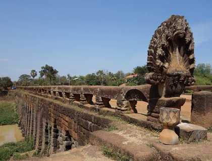 With one expedition group departing from Jahan in Kampong Cham and the other ship-bound from Siem Reap, what better place to meet and cross than the perfectly intact 12th century Angkorian Bridge at Kampong K’Dei? This bridge connected the Mekong River communities at Kampong Cham to the great Angkorian Temple complexes 900 years ago, and its multi-headed Naga snake ballustrades still span the bridge in its entirety. The Naga is a snake deity that often appears with numerous heads, connecting the earthly world with the immortal. In Cambodia, the naga is especially prominent and significant as part of Khmer origin mythology and is not considered a bad or evil deity.