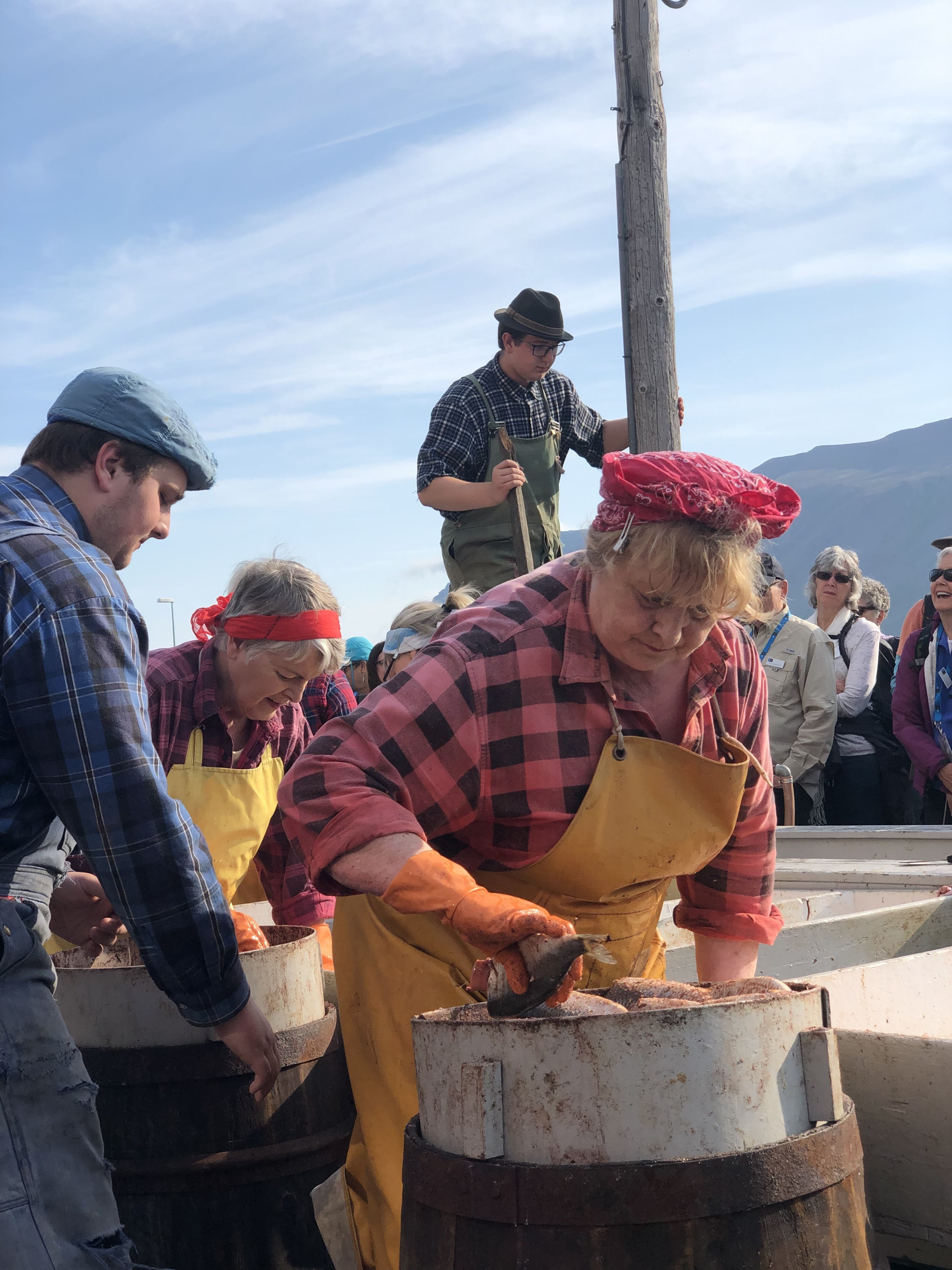 Atlantic herring (Clupea harengus) are migratory forage fish that swim to the waters of Iceland. A century ago, enterprising Norwegians partnered with Icelanders to develop a robust herring fishery and export economy, which exploded in the small town of Siglufjördur. Today, the herring fishery has declined, but what remains in Siglufjördur is an award-winning museum highlighting the industry’s storied history. Vital to this history is the role that women played in the development of this part of Iceland’s economy. We experienced firsthand the herring girls carrying out their hard work plus a performance of Icelandic folk music, fellowship, and dancing.