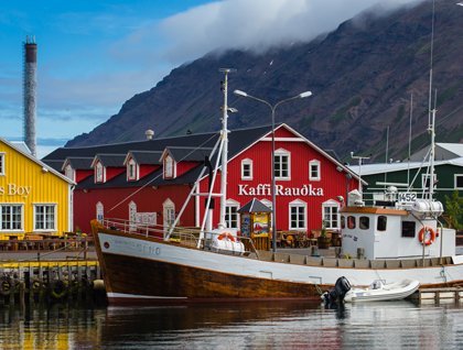 After breakfast we go ashore at Sigufjordur, a small town with less than 2000 inhabitants, set against steep mountain slopes prone to dangerous avalanches that often block the road entering town during the long, dark Arctic winter. We are here to visit the award-winning maritime museum with its excellent displays, historic boats, and artifacts housed in refurbished warehouses. We are treated to a theatrical performance that recounts the colorful, and very profitable, history of herring fishing in the area. The black-headed gulls and Arctic terns also enjoy the demonstration, swarming and fighting over scraps of fish.