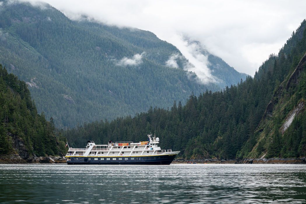 National Geographic Quest arose amidst light clouds within the protected waters of Ushk Bay. This area is known for a salmon stream and yields plenty of opportunity for kayaking and exploring the vast meadows of its inner waterways. On this day’s occasion, guests were able to hike and paddle their way along the coast of Ushk Bay and witness firsthand the life cycle of Pacific salmon making their way upstream. As we transited through Peril Strait, we were lucky to see humpback whales. These immense mammals were “lunge feeding” very near our ship. Being able to witness this event was unique for guests and staff. Lunge feeding is process through which individual whales push their gaping mouths through the surface and collect any fish or planktonic invertebrates in the process. Witnessing this behavior was truly a remarkable experience for all. We will cherish this moment for a lifetime.