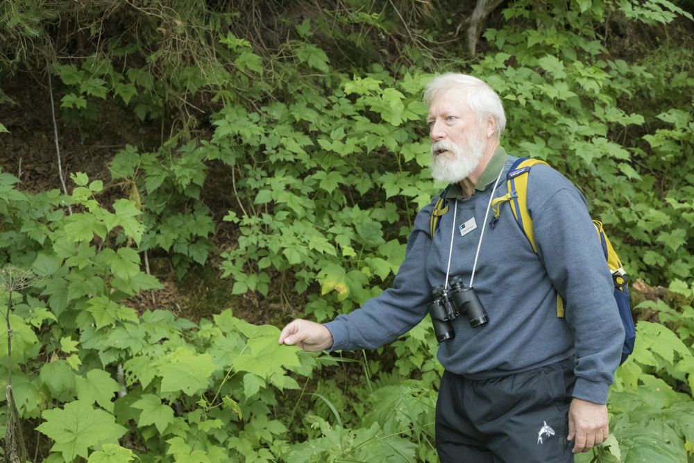 Our last morning in the wilderness brought us to the protected inlet of Ushk Bay. A humpback whale repeatedly breached, slamming its pectoral flipper on the surface of the water before its tail smashed the sea’s surface. Over and over, this extremely active whale leaped and twirled as we delighted in its performance. The Zodiacs launched. Once again, we bundled into our rain gear and headed to shore for forest walks and strolls along a salmon stream. A wide meadow with braided streams ran through the thick forest. Random, rusting iron equipment from a long-forgotten enterprise was half buried along the pebbled shoreline. We crossed small, rushing streams. The stream on the far side of the meadow shivered with the fins of pink and chum salmon. We watched these creatures, driven beyond self-protection, as they completed their life cycles by spawning. We saw females turn on their sides and in a spasm of enterprise, writhe their tails along the pebbled bottom of the stream to make a perfect indentation for their precious eggs. Attendant males stayed within inches of busy females. The walking path was heavy with the bodies of salmon. Life and death in the Alaskan wilds surrounded us. We returned to the warmth of our ship and traversed the narrow passages toward Sitka. Mist hugged the trees as we saw night descend on our final evening in Southeast Alaska. Photo caption and photographer: Humpback whale. Photo by Rich Kirchner