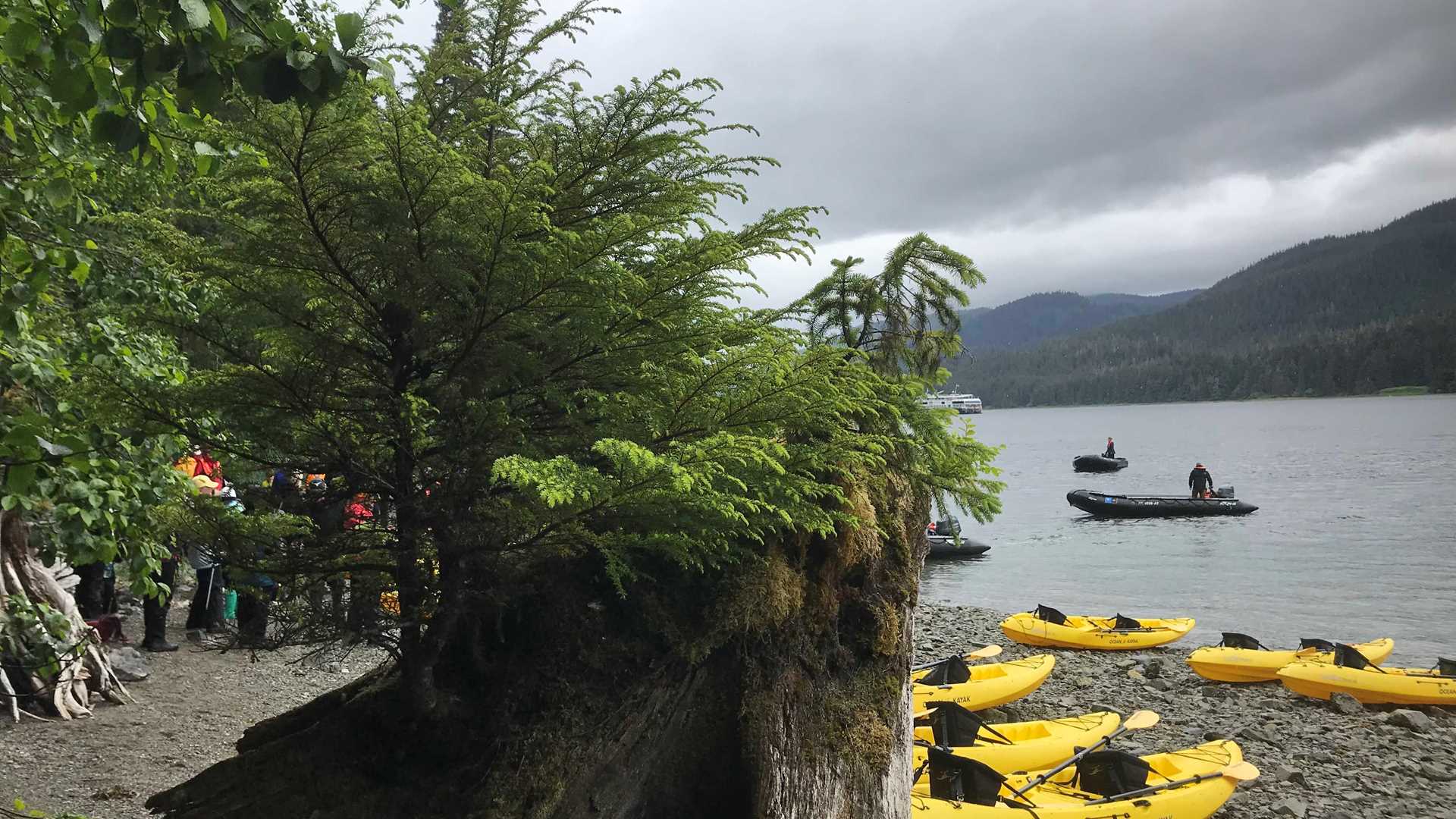 After morning operations, we returned to the ship for lunch and an afternoon of activity that included Zodiac driving for our younger guests, and a polar plunge for all brave enough to jump into the cold water of Sitkoh Bay. Our day ended with the presentation of certificates to those who completed our Global Explorers program and a slide show of their work. Our farewell dinner was followed by a guest slide show as we began our transect of Peril Strait toward our final destination of Sitka.