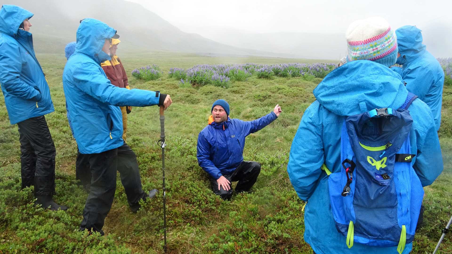 One of the easternmost points of Iceland, Skálanes is an old farmstead at the mouth of Seyðisfjörður Fjord. Today it is a nature and heritage research center. We had the good fortune of being able to pay the reserve a visit and hear how the center’s archaeological research has already revealed rich findings from earlier times. We also learned about the intricacies of living in a country with a long history of soil erosion and how authorities and local people fight it. We had the chance to pause the walk, take a deep breath, and hear the mild drizzle drumming softly on our jacket hoods. We listened to the calls of puffins, kittiwakes, fulmars, gannets, oystercatchers, Arctic terns, redshanks, redwings, and black-tailed godwits while breathing in the sweet smell of heather, crowberry, bog bilberry, and nootka lupine. Standing in the fog, far away from the hustle and bustle of the world, it felt for a moment like we were the only people in the world.