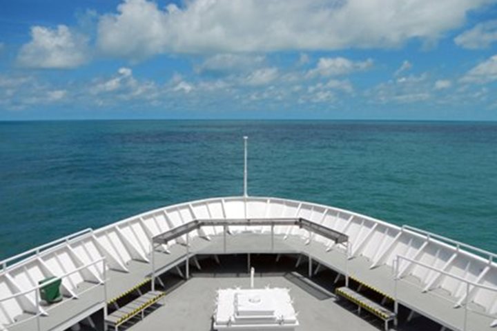 This morning we sailed over the bar of the Essequibo River in Guyana. We had to time our departure to coincide with the highest tide because the bar is very shallow. We made it over without much water under the keel—but enough. All along the way we were dodging fishing gear which had been set right in the middle of the channel and which made the transit even more interesting than it would have been otherwise. As we reached the ocean we sailed for miles in the muddy river water, which extends far out to sea, floating on top of the more dense salt water. Finally we reached the blue ocean water and then began to see more fishing activity. The ship traffic in the river water was comprised primarily of small ships bringing in fuel oil from Venezuela as Guyana has no local petroleum supply. After a very full day yesterday, which included a speedboat ride up the river, followed by a wonderful airplane ride up to the Kaieteur Falls where we walked to the falls and along the river, then we returned by another airplane ride and speedboat trip back to the ship, everyone was ready for a day at sea to catch up. We spent the day with presentations on the rain forests of South America and the ethnobotany of rain forest plants. In the afternoon we screened the film Papillion to prepare us for our visit to Devil’s Island in French Guyana if a few days. The rest of our day was spent reviewing our many photographs from our trip to Kaieteur Falls and enjoying watching the sea pass beneath the keel. We were sailing against the South Equatorial Current, which extends a few degrees into the Northern Hemisphere and noticed that the ship was being set at a rate of nearly 1 knot astern. This current continues on westward to carry warm equatorial water into the Caribbean and is one of the most important currents in the equatorial Atlantic.