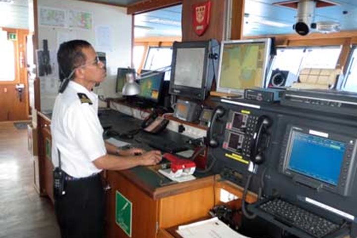 We found ourselves sailing through a most unusual sea today as we made our way towards the north entrance of the mighty Amazon River. We were in the ocean over a hundred miles off the South American coast at breakfast time and the water beneath our keel was fresh enough to drink. The first European explorers to sail in this region called it Mar Dulce. The rich light-brown color of the water told us tiny suspended sedimentary particles had been carried far out to sea by the distant river. It has come from the eroding Andes mountain range over twenty five hundred miles (4,000 km) to our west. So great is the volume of freshwater being discharged from this system, one must travel over two hundred miles (320 km) offshore to reach clear ocean seawater. During the day, we enjoyed three very interesting presentations. Tyrone Turner talked about the Quilombos of Brazil, a vibrant culture of people that are descendents of escaped slaves. Wade Davis presented “People of the Anaconda” and told us about some of the indigenous populations of the Amazon. Tom Ritchie talked of the Columbian exchange, that is, things that were introduced from the New World to the Old and vice versa. By suppertime we had entered the broad mouth of the north entrance of the Amazon River Delta. It was tricky navigating through the channels in this broad, featureless braided river system and our navigation officer remained diligent, using both paper charts and electronic charts displayed on monitors (see photo). From here we continued slowly up stream toward the city of Macapa, where we planned for a morning arrival and clearance into the country of Brazil.