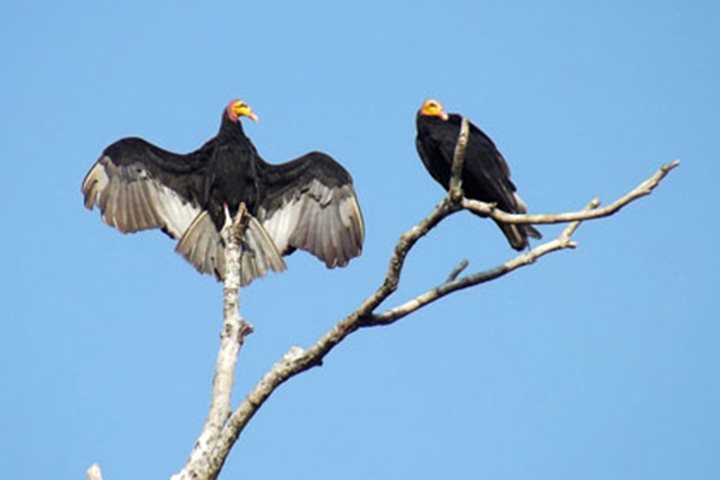 We experienced a very relaxing morning at sea, which allowed us to recuperate from the past two or three days of excursions in Trinidad and Tobago. Because of our late departure last night from Port of Spain, Trinidad, we decided to wait until this morning before conducting our Lifeboat Muster exercise. This also gave us a chance to introduce the full compliment of Lindblad Expeditions staff naturalists and National Geographic lecturers and photographers. There wasn’t a lot of marine life to be seen this morning, apart from a few bottlenose dolphins, flying fish, a magnificent frigatebird, and a lone masked booby. What we did see in abundance, however, were oil rigs dotting the relatively shallow and calm seas off the coast of Venezuela. Today, Venezuela is one of the most important oil-producing countries in the world, and this is also the most important aspect of its national economy. In the late morning, we suddenly encountered greenish tan-colored water that gave evidence we were approaching the mouth of the Orinoco River. The silt-laden fresh water outflow from the river does not immediately mix with the Caribbean Sea’s salt water and the surface meeting line of the two different densities of water (fresh water versus salt water) was very obvious. As the day wore on, the water we were sailing in got muddier and muddier and as we closed in on the river mouth itself, many more species were observed, including various land birds, shore birds, and terns. We also noticed trees, logs, and aquatic plants, such as water hyacinths, that had floated downstream and were well on their way out into the ocean. By mid-afternoon, we picked up our river pilot somewhere within the long excavated channel leading into the Orinoco River. Soon, the magnificent tropical rain forest could be discerned on either side of the ship, first by binoculars and later by one’s naked eyes. The late afternoon clouds were very impressive, and we could pick out huge cumulo-nimbus clouds forming into thunderheads far away over land. As our vessel came closer to the eastern shoreline, we could see it presented us with an impenetrable wall of greenery. This flooded edge of the forest is composed of water-resistant trees and all sorts of water plants. It was surprising to suddenly see river people appear occasionally from out of nowhere, it seemed, in small dugout canoes in order to wave to us and ride over our wake. Farther upstream, we began seeing a few widely scattered stilt houses along the forest edge. There were also inviting little tributaries that led into the dense tropical rain forest, which seemed to be beckoning to us. Some people would look at all this and think it something of a “Green Hell,” while others, such as us Lindblad Expeditions naturalists and guests, see it as a kind of “Green Heaven.” We anchored around sunset near the mouth of a tributary called Rio Araturi, and immediately spotted some red howler monkeys in the tree tops. Another wildlife highlight here, just before dusk, was the sighting of a small flock of blue and gold macaws. This looked like an ideal place to conduct a night expedition. So, after an early buffet dinner, about half our compliment of guests opted to go out with us on a night excursion. Everything really looks different in the dark. It was great fun to explore along the jungle’s edge, using powerful handheld spotlights with which to search for the eyeshine of creatures in the trees and bushes. Several interesting animals were spotted, including a couple unidentified mammals in trees, bats, a tree boa, various frogs, a big water spider, and more. Viewing the vegetation up close was also interesting, and we pushed our Zodiacs deep into some narrow, little tributaries where we had to maneuver through brush and duck under overhanging vines and branches. The waning moon, which was just a couple days past its full stage, rose during our venture and gave us some extra light to help us find our way around the river system. It was a near perfect excursion…both adventurous and fun.