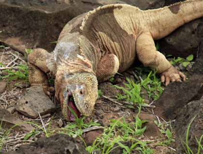 Later in the afternoon, we walked through one of the largest colonies of sea lions in the archipelago—there were easily a few hundred on two separate white sandy beaches. We accomplished our goal of the day, which was to find the elusive Santa Fe land iguana, endemic only to this island; several big males were spotted feeding near the trail, and all of our guests were amazed and took many pictures. Another fabulous day in the Galapagos!