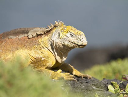 This morning we are anchored close to South Plaza Island, near Santa Cruz. This small island is teeming with life of all kinds. Our first impression was a group of baby sea lions paying on the shore. Minutes later we spotted land iguanas climbing bushes and eating their leaves. Here we also found a colony of swallow-tailed gulls and some tropicbirds nesting on the rocky cliffs. We’ve had plenty of rain on the islands and all of the plants are blooming, therefore land birds are seen all around us.