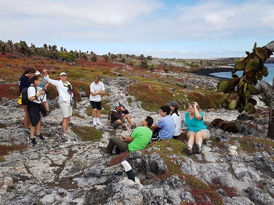 For the second part of the day we explored Santa Fe Island. Here we had the opportunity to snorkel with sea lions and sea turtles. Some of us chose kayaking and explored the dramatic cliffs of the north side of Santa Fe. This island has a great collection of creatures. There are Darwin finches and mocking birds, but the most conspicuous is the Galápagos sea lion. These marine mammals form colonies on the beaches and they are playful and charming. In the late afternoon we had some time to explore the dry forest in search of the endemic Santa Fe land iguana. It was a successful day as we found several of these endemic creatures!