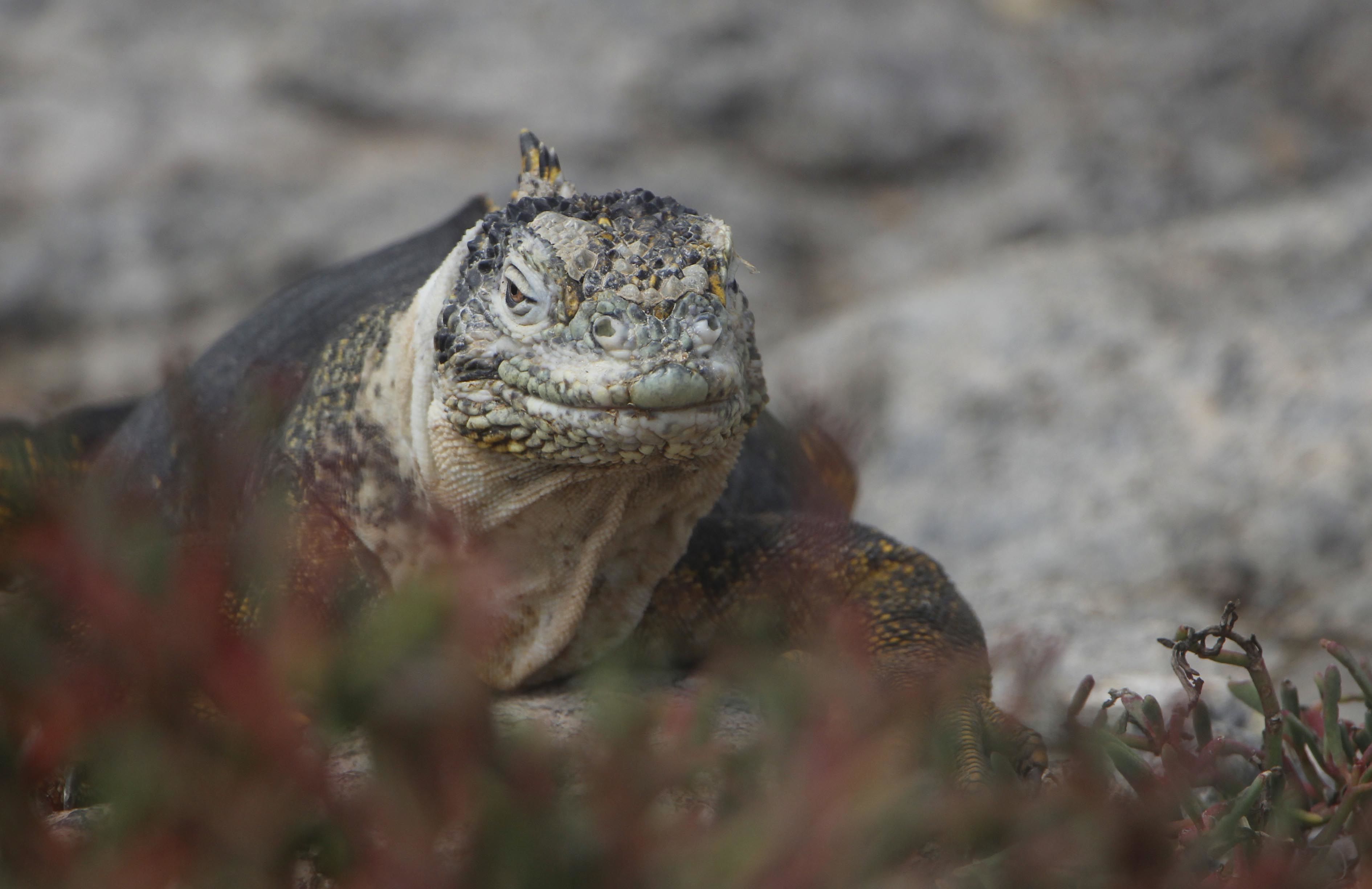Plaza was formed by several uplifts thousands of years ago and proof of this can be seen in the pieces of coral found along the trail we were on. Since humans settled on the island, the main predator on Plaza, which was the Galapagos Hawk, is no longer present. Today this space has been occupied by some owls who were spotted under bushes or sharing habitat with some land iguanas. Land iguanas feed on prickly pear’s flowers or fruits when they fall to the ground. Although South Plaza’s fauna is fascinating to observe, its flora creates a striking contrast and presents one of the most colorful landscapes of all the islands. The cactus adds its green foliage, and the Galapagos carpet weed turns red to reserve all the energy it can during the dry season.
