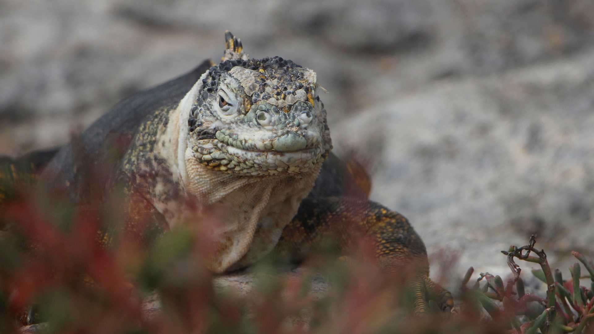 After a day full of surprises among tortoise civilization and observations in their natural habitat, we moved east to two different locations. South Plaza is located on the east coast of Santa Cruz and has a completely different ecosystem than the islands previously seen; although the landscape looks barren and rocky, this island is home one of the land iguanas specie, the Conolophus subscristatus. After breakfast we headed on Zodiacs to dry land, when in the distance, two whales swam indifferently close to National Geographic Islander. We approached and identified a female humpback whale and her calf. The swimming display was spectacular, moving its caudal tail vertically, splashing water, or showing us the white underparts when jumping. This event was the delight of our guests, who took pictures or videos of the spectacular sea mammals.
