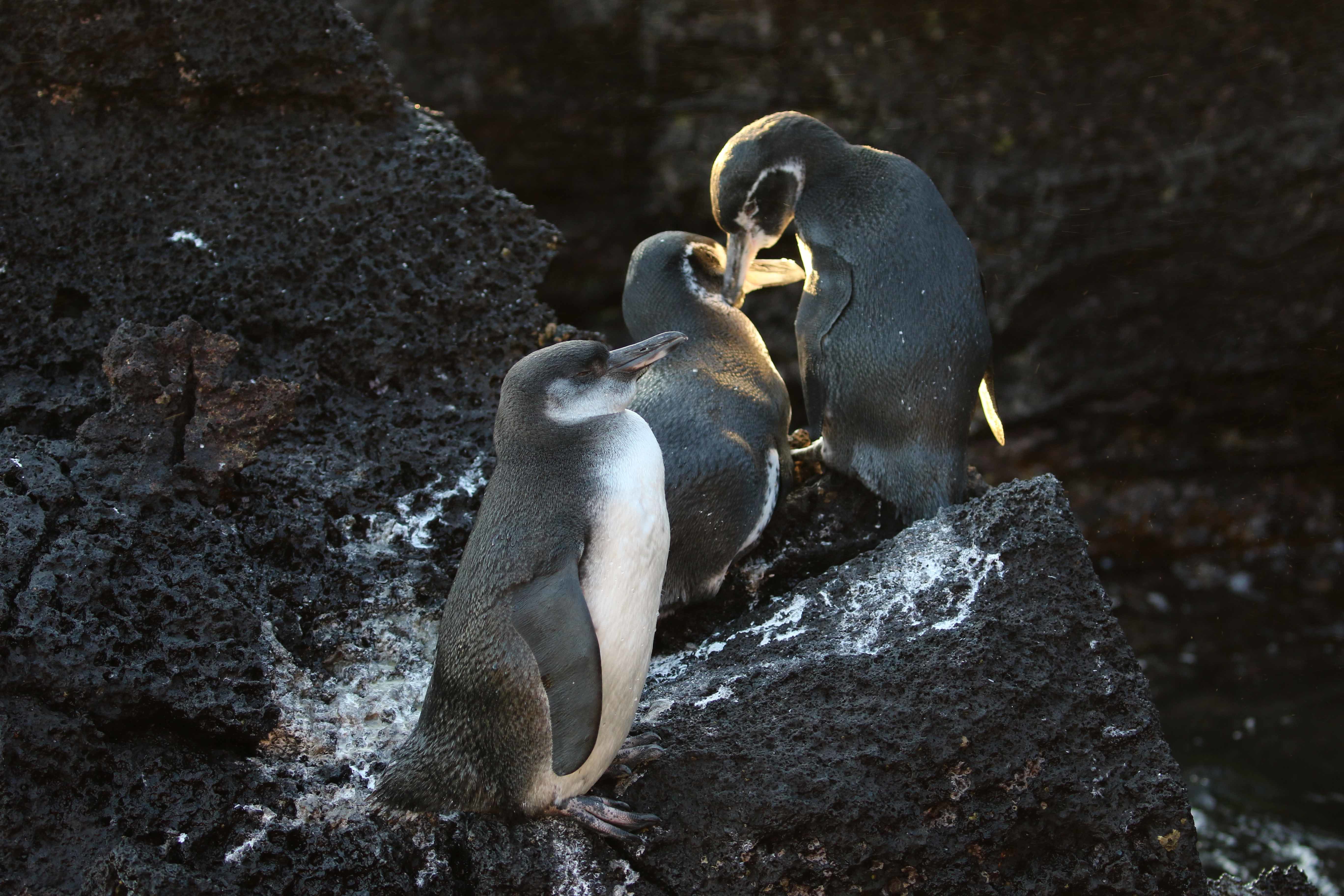 We woke up early in the morning as National Geographic Islander navigated along the northern part of Isabela Island. Slowly the sun appeared above the clouds surrounding Volcano Wolf. We spotted our first birds as Galapagos fur seals returned to shore from their night hunt. We enjoyed a great breakfast. Afterward, expedition leader Vanessa called everyone to the bow to celebrate as we crossed the equator. Our guests happily crossed the line. Approaching Punta Vicente Roca, the visitor site, we spotted Galapagos sea lions and a good number of ocean sunfish. The first activity of the day took place as we dropped anchor at Punta Vicente Roca. This is a spectacular geological site. The combination of the former volcano’s tall cliffs and the tuff cones formed later adds an amazing contrast to this unique visitor site. Our best tools for exploration, our Zodiacs, were lowered down, and off we went to explore the coast. We observed Nazca boobies and blue-footed boobies resting on the small ledges of the tuff cones. Galapagos sea lions swam close to our Zodiac, and Galapagos penguins rested on a broken piece of the tuff cone after feeding. What a wonderful sight! In a calm area, we found a good number of Pacific green sea turtles. The morning’s activities ended with snorkeling. Pacific green sea turtles, plenty of colorful fish, Galapagos marine iguanas and flightless cormorants surrounded us. It was a phenomenal experience! The ship was repositioned toward Fernandina Island. The youngest island of the archipelago, Fernandina is a highlight of our expedition. This island shows our guests the beginning of life. We observed animals thriving in the hostile environment. Pioneer plants like lava cacti grow on the lava fields, breaking down rocks little by little to create soil for the next generation of plants. Punta Espinoza is known for its huge colony of Galapagos marine iguanas. It is hard to distinguish the iguanas from rocks since they are so dark in color. On the other hand, colorful Sally Lightfoot crabs added contrast to the young, dark lava fields. We ended our walk as the sun was setting, returning to the ship with great memories. It was a fantastic day in the western part of the archipelago.