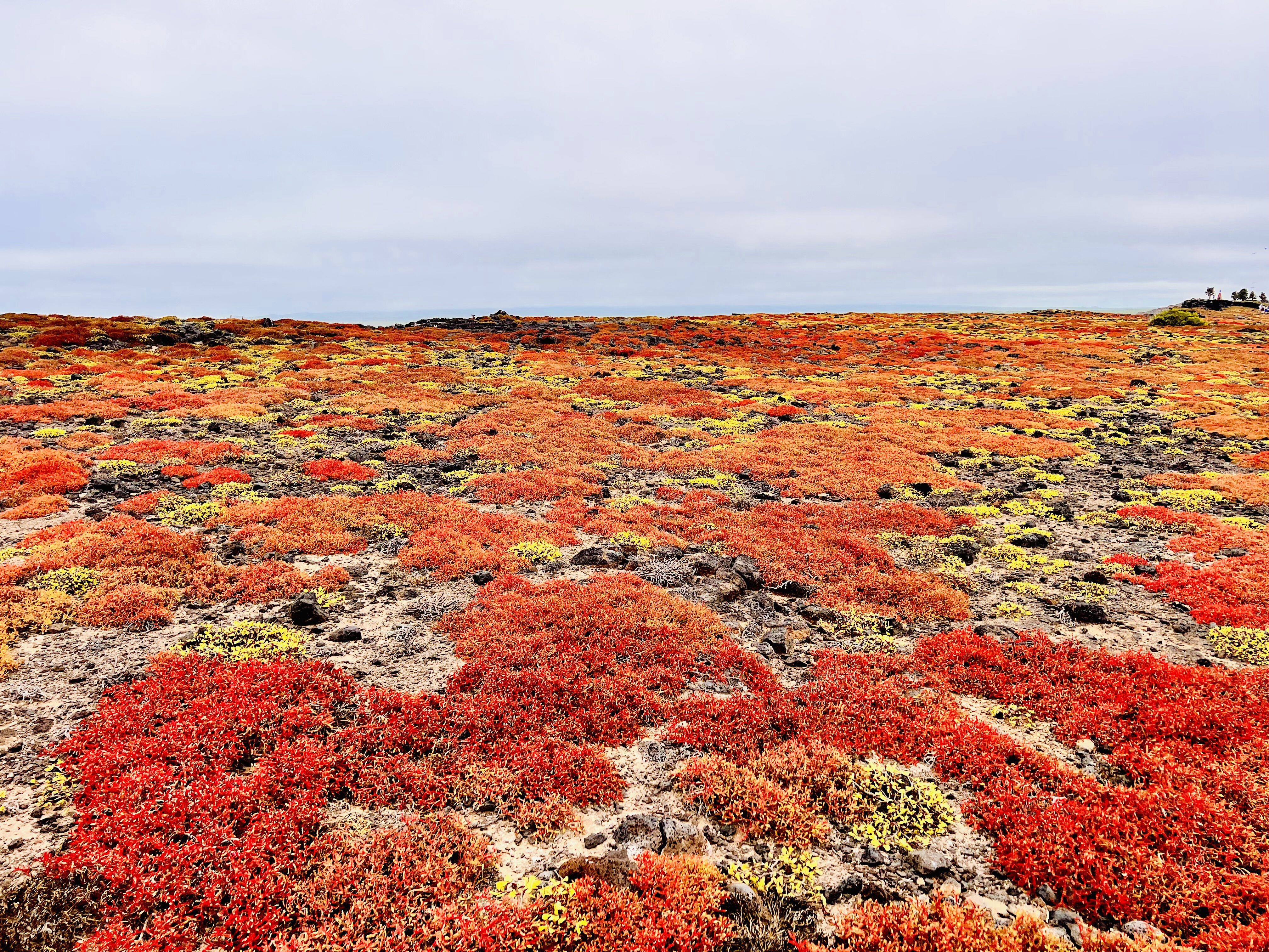 Plaza has an amazing landscape with cliffs, the blue ocean surrounding the island, and red Sesuvium. The succulent plant turns a red color in the dry season, and it really looks like a carpet.