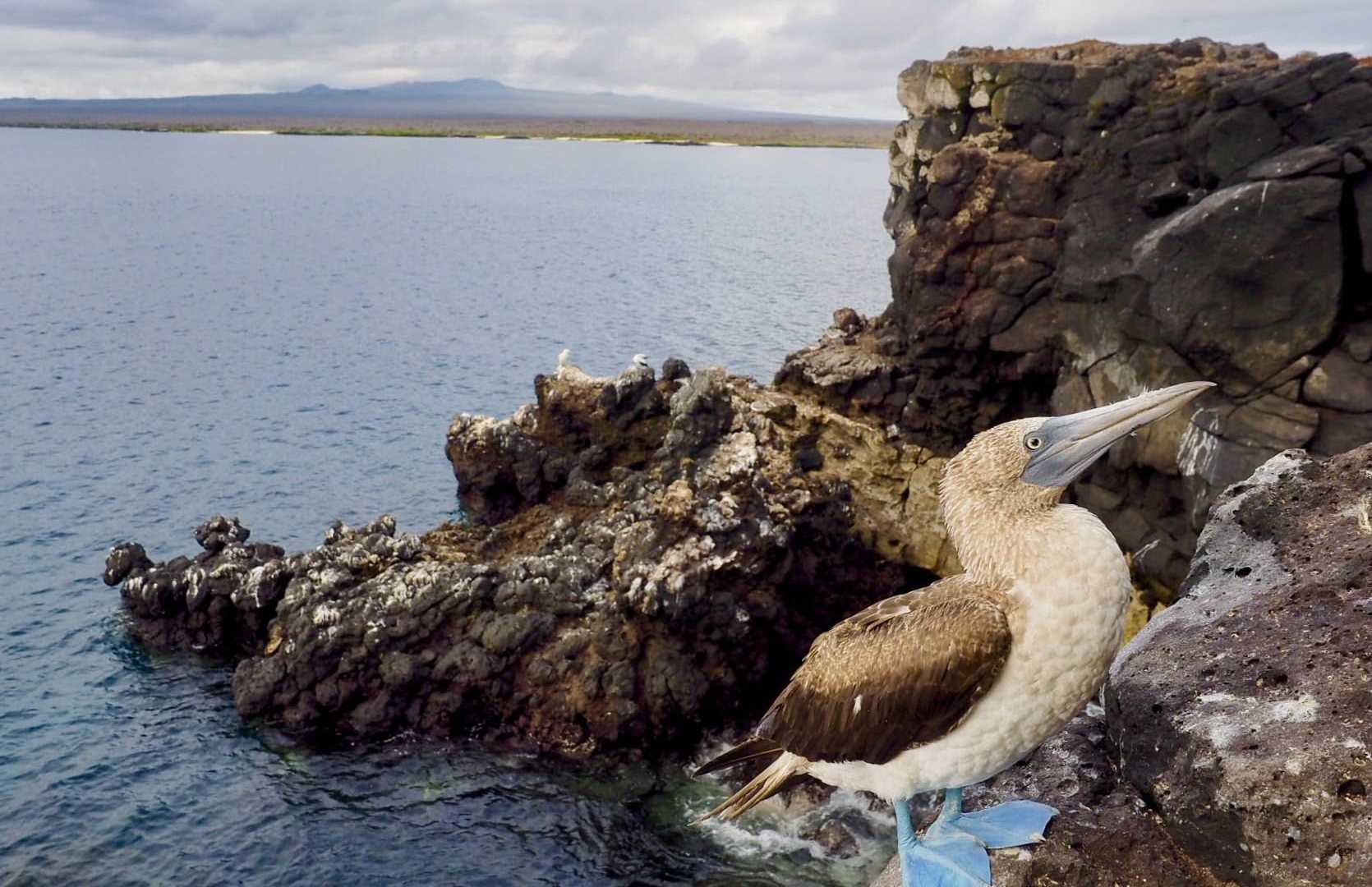 Two of the smallest islands located at the central part of the archipelago are home to two of the three endemic species of land iguanas. With the fist beams of sun we headed to Plaza Island, which lies just off the eastern coast of Santa Cruz and formed from uplifted marine lava. As soon we set foot on the island, sea lions, swallow tailed gulls, marine and land iguanas greeted our guests. We walked along the barren terrain observing the inhospitable landscape, evidence of the lack of rainfall. Due to this climate, land iguanas patiently wait under the prickly pears for some leaves, flowers, or fruit to fall and they eat the leaves of succulent plants to compensate for the lack of fresh water. From the top of the cliff the view contrasted our location dramatically, because in the distance the highlands of Santa Cruz Island looked green and cloudy, while along the vertical walls of the cliffs abundant numbers of seabirds fluttered around their nests calling unceasingly. We observed shearwaters, swallow tailed gulls, red billed tropic birds, frigate birds, blue and Nazca boobies.