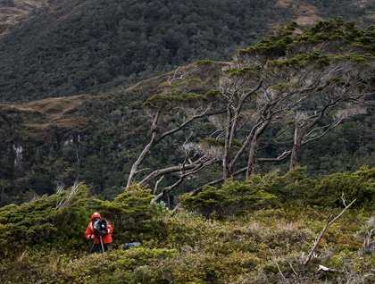 The scenery we awoke to was spectacular: snow-capped mountain ranges to either side of the vessel, dramatically lit as spring squalls passed through the fjords. There was plenty of bird activity: albatross and South American terns together with skuas, giant petrels and the ubiquitous fulmar.  Our destination for the day is Puerto Natales, so we returned to the protected waters of Canal Smythe and by some skillful navigation (aided by our onboard Chilean pilots) approached the Kirke Narrows at the top of the tide to make the dramatically narrow transit with the minimum of current running through the channel. En route we were treated to the spectacular features of an active glaciated landscape with hanging valleys and tributary glaciers with Andean condors soaring overhead.