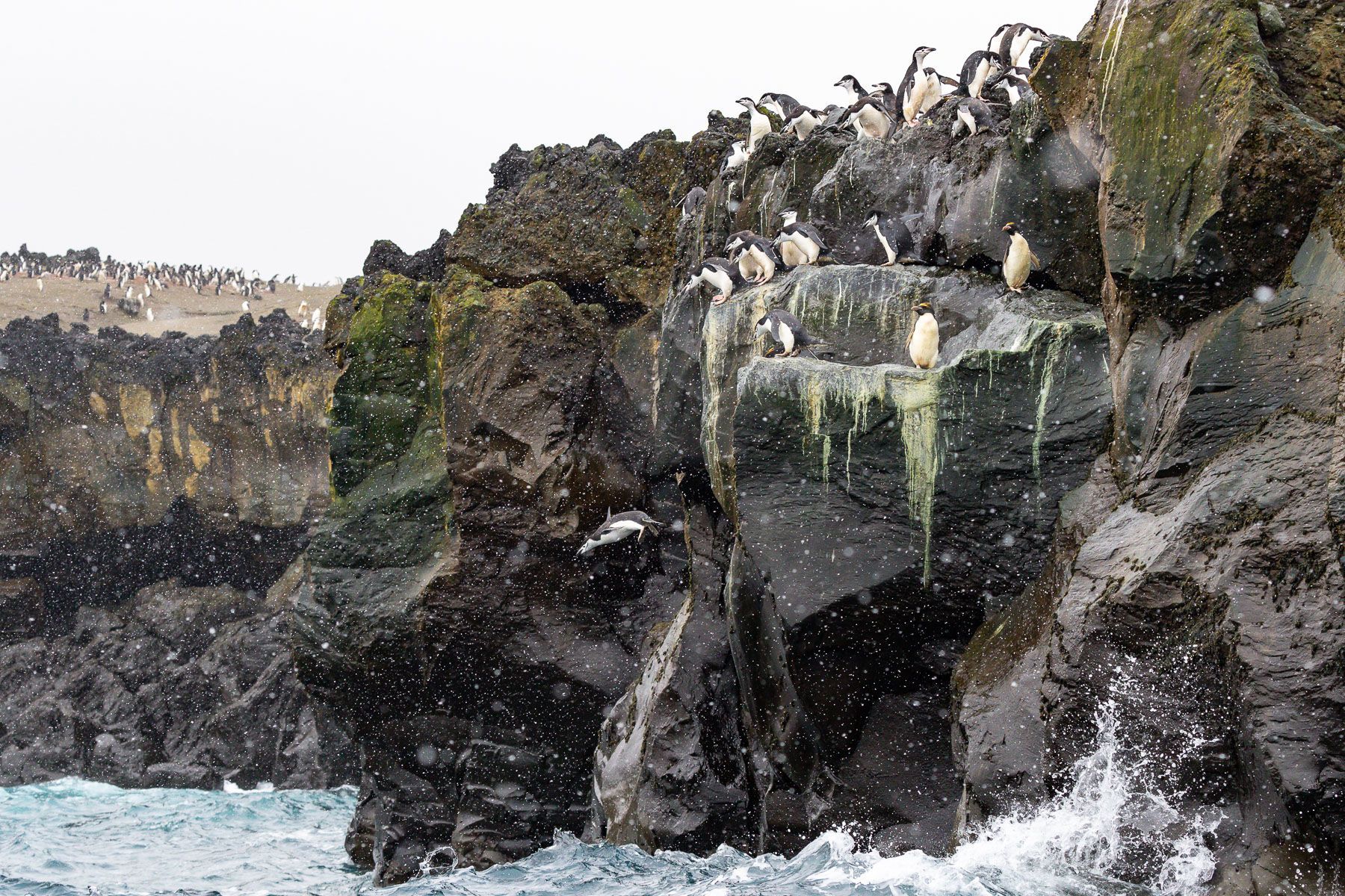 As National Geographic Explorer navigates north, we leave glaciers, snowy peaks and penguin processions in our wake. We cringe against biting winds as we squint to see through the homogenous fog that hovers over nearly freezing, turbulent seas. We are delighted at the sight of a light-mantled sooty albatross alongside us.