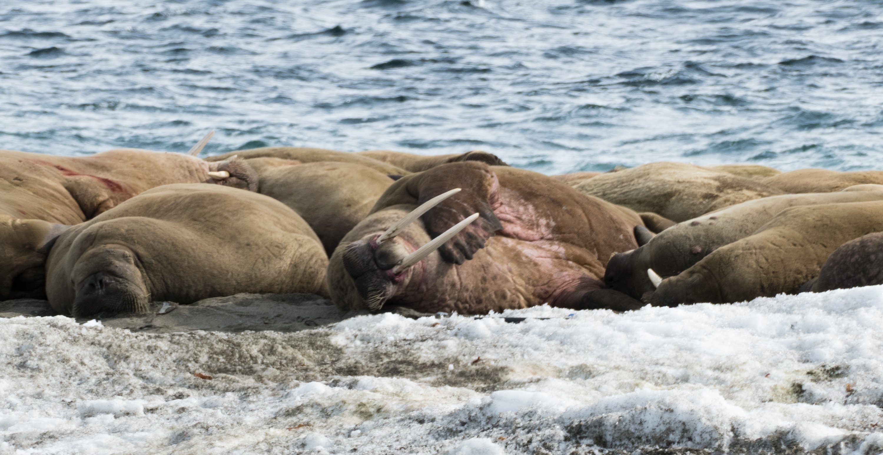 Awakening to an unusually sunny day for such high latitudes, National Geographic Orion began its exploration of Spitsbergen’s West Coast. Arriving at our first landing, our guests ventured to shore to walk amongst the snow-covered mountains for views of Arctic fox and caribou. Before lunch could be served, our bridge received an emergency call from a stranded sail boat that had gone high and dry upon some inshore rocks. Jumping to action the National Geographic Orion crew and staff combined to aid the sailors in need, and after some clever assessment and hard pulls, were able to free the sailboat from its perch. This left us the afternoon to explore, and in doing so, we came upon a fine haul out of walrus sunning themselves upon the beach.