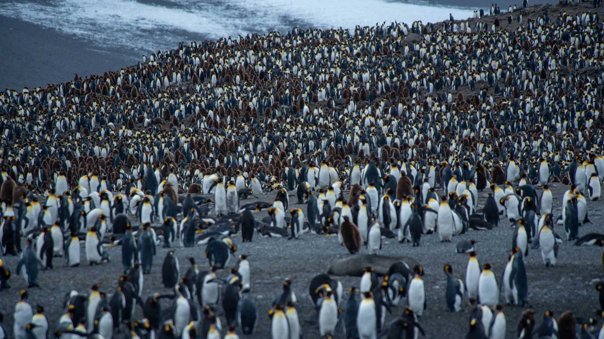 The early bird gets the worm; today, the worm was one million king penguins! Starting our morning at St. Andrew’s Bay, we wandered among fur and elephant seals to get a fantastic view of the largest colony of king penguins on South Georgia. With over 250,000 breeding pairs, plus the rambunctious “oaken boys” that have not yet molted their baby down feathers in exchange for their adult waterproof coat, an easy conservative estimate of the colony’s population is around 800,000 to 1,000,000 individual penguins. An incredible sight, sound, and smell to behold – we took several minutes just to try to take it all in.