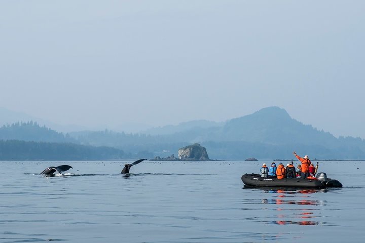 Once back aboard, we encountered a handful of fin whales. These huge animals circled in the water, along with uncountable numbers of birds. Clearly, the feeding was good! We then departed St. George, cruising south toward Dutch Harbor. This afternoon we had presentations on marine mammals and WWII in Alaska. The seas remain calm and we cross our fingers for more excellent conditions tomorrow.