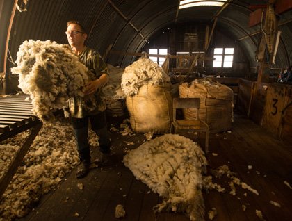 Next, we join Glenda Watson for a sheepherding demonstration facilitated by her trusty border collie. Once the sheep are rounded-up Paul joins us again to demonstrate how they are shorn. Illuminated by the dim, yet soft light of the shearer’s shed we watch a modern variation of an age-old tradition. With electric clippers he quickly dispatches a disgruntled sheep of its wool before adding the fleece to the many bails being prepared for market.