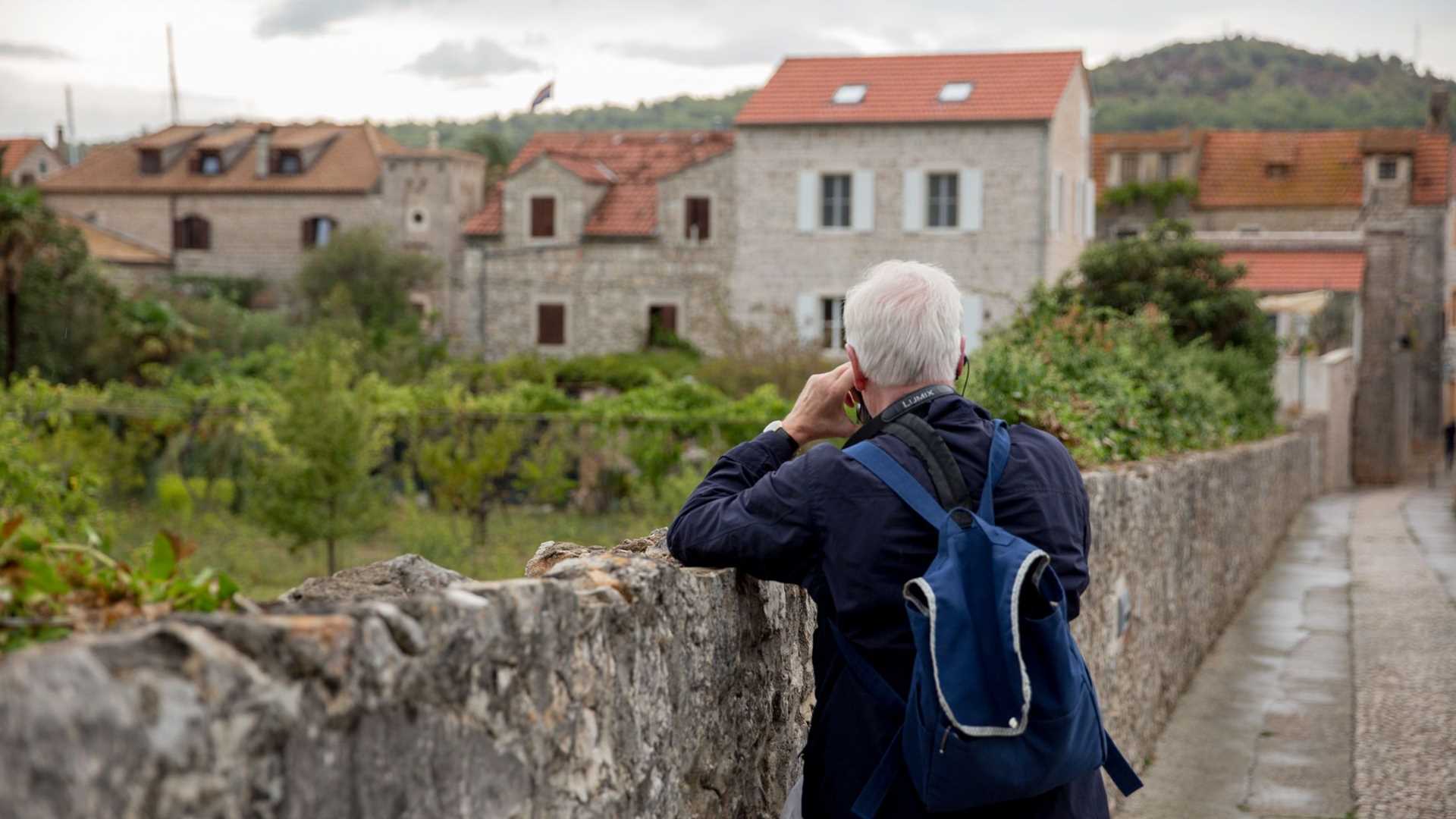 This morning dawned, the sky was a slate grey with low clouds on the horizon. The sea swells were five feet with a wind of seven on the Beaufort scale (34 knots per hour). I think most of us were surprised to see the sails hoisted, but the sailors on the Sea Cloud always want to sail.  They went to their stations, and the lower top sails went up at 8:15 a.m. We were making about 7.7 knots under sail with a following sea on our way to the magical island of Hvar. Eric Skogg gave a fascinating lecture on photography. After a short break Petra Noesvic treated us to a wide-ranging and informative presentation on modern Croatia.