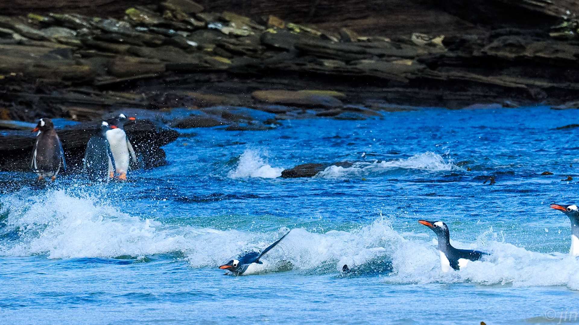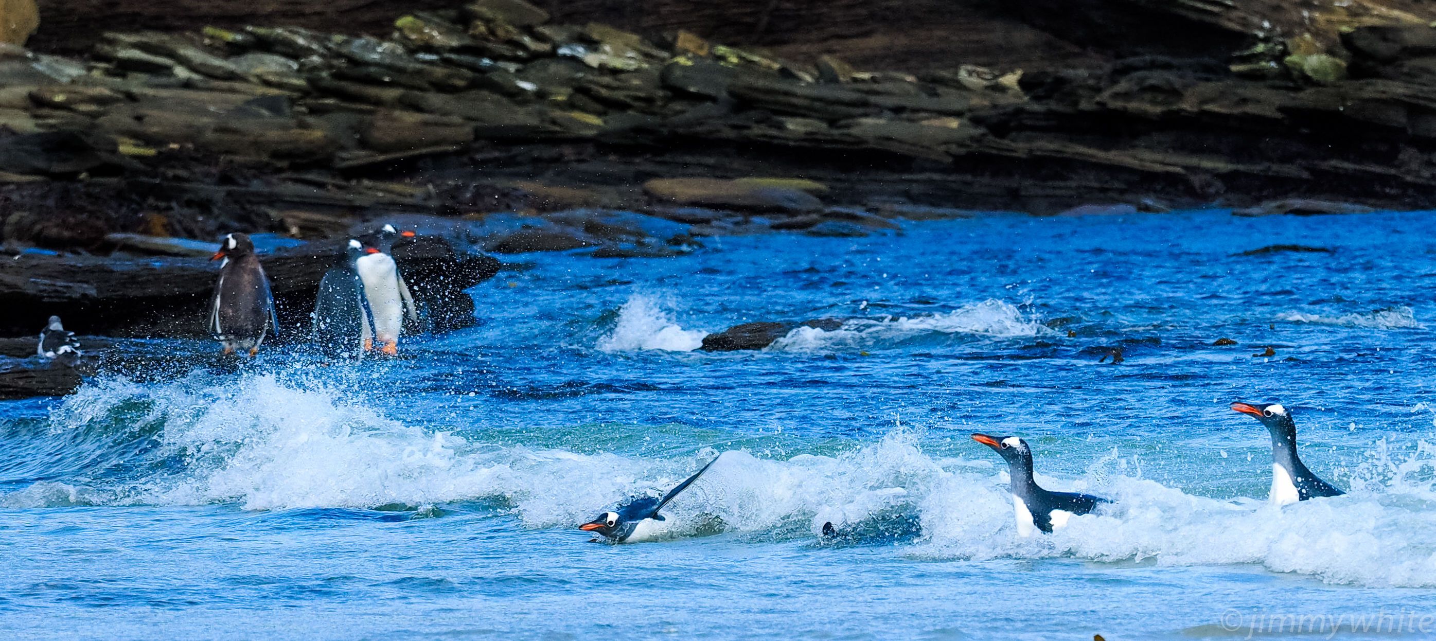 This afternoon the National Geographic Explorer continued its navigation through the Falkland Islands, arriving at Saunders Island, an island rich in wildlife and steeped in history. The island has been in the Pole-Evans family since 1987, with our very own expedition leader, Russ Evans having spent a good deal of time here in the early days of the island’s agricultural history. Hikers venturing into the rocky out crops were rewarded with colonies of both rockhopper penguins and black-browed albatross. The saddle between the islands between the beaches was home to gentoo, king, and Magellanic penguins.