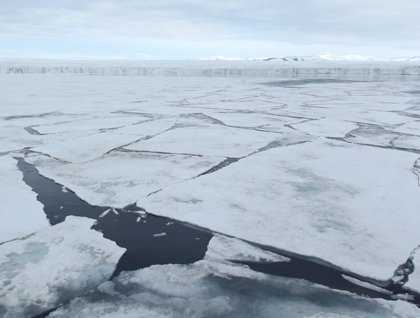 Throughout much of the day, we could enjoy spectacular mountainous scenery on Spitsbergen in the background.  This southeastern region of Spitsbergen is quite old, geologically speaking.  The coastal mountains (where not covered with snow and ice) clearly show many horizontal sedimentary layers of different colors.  These layers exhibit a continuous history of sea floor deposits that were laid down from 360 to 200 million years ago (Carboniferous through Cretaceous periods).  Erosion on the outer slopes of the mountains produces small boulders and rocks composed of fine sediments, many of which later split apart into small flat sections.  The flat faces of some of these rocks exhibit invertebrate fossils that lived in ancient seas and it is always exciting to find them as we walk along Svalbardian shorelines.