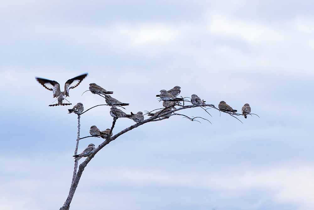 In the afternoon we visited Flor de Castaña dry forest. This place is one of a kind! Everything in this region is lush green but this flooded forest is dead! It is made of dead trees and it is home to several species of birds. The dead trees are nesting sites for caciques and parrots. Among all these vibrant life forms we found flocks of sand-colored night hawks. All of them very well camouflaged on the bark of the dead trees.