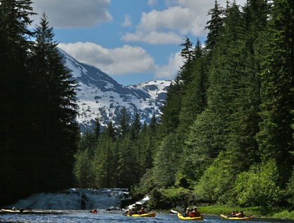 Our expedition began last night, as lines were cast off from Sitka and we headed north past fishing boats, then numerous spruce-covered islands. After dinner we were on deck to enjoy views of Mount Edgecumbe, an inactive volcano near Sitka. At 10:30 p.m. those who were still awake saw a bear in the waning light. Through the night we traveled north and east through Peril Strait.