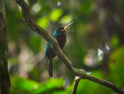 We woke up to super calm waters off the northern coastline of Floreana Island. Perfect conditions for a bit of kayaking among the offshore islets near Post Office Bay! Brown pelicans, egrets, green sea turtles, and red, black, and white mangroves…a peaceful environment for an hour or so before breakfast. Some guests went straight to the beach to walk a few yards through saltbushes and found themselves facing the famous “barrel” of Post Office Bay. It’s been over a century since the barrel was first placed here for use by whalers to exchange correspondence and carry back letters of business, or perhaps letters to loved ones. Today, postcards fill the barrel, but the turnover is fast. Each day, some of the postcards are taken for delivery while others are left behind in hopes that someone will continue the tradition and hand-deliver them in the weeks to come. Between breakfast and lunch, we played in or on the water around Champion Islet, just to the northeast of Floreana Island. We didn’t make a landing but explored by Zodiac, including a birdwatching circumnavigation followed by deep-water snorkeling in incredible waters with parrotfish, angelfish, pufferfish, damselfish…all kinds of fish! Sea lions buzzed by, desperate to draw attention and get a reaction out of us, which they did. Squeals and shrieks were heard. After an instructional briefing on iPhone photography and a presentation on Charles Darwin in the afternoon, we went ashore on the main island of Floreana. There has been quite a drought this year and not much rain the previous year either. The land was dry, the vegetation was brittle, and dead leaves were everywhere. But all that is fine for the native and endemic species; after all, they’ve been through this before, over the millennia, and survived. The stress is on the introduced species who depend on higher amounts of freshwater for survival. While their defenses are down and populations are stressed, now is the time to really push for programs to eradicate introduced species. Floreana Island is ready for restoration. The National Park and collaborating NGOs are preparing Floreana to receive native species that were once thought doomed for extinction. Giant tortoises, Floreana mockingbirds, and racer snakes may yet survive and prosper with the help of these organizations. We spent the afternoon following an easy trail from a dark-colored beach of mineral origin and over the isthmus to a white, organic beach where green sea turtles were riding the breakers offshore. The turtles are not quite ready to come ashore and lay eggs, as temperatures are still too low for another month or so. But a great blue heron and frigatebird were checking out the scene, just in case someone tried for an early nesting. It will be a couple months before hatchlings try to race to the ocean in the dark of night. We returned to our base of operations as the sun set low on the horizon. National Geographic Islander II was waiting for us with hot water and the comforts of home.