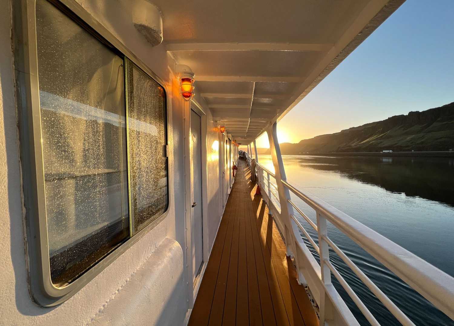 This morning aboard National Geographic Sea Bird, we awoke at anchor on the Columbia River. We were greeted by clear skies, cool temperatures, and a fantastic view to the west of Mount Hood. Shortly after breakfast, our bridge team navigated the vessel with skill and precision under the large guillotine-type lock gate as we made our way into the John Day Lock.