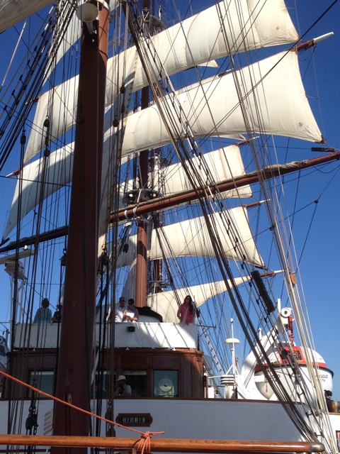 After taking some wonderful pictures of the Sea Cloud with its sails up in the morning, we headed towards the island of Tinos. Tinos is known to the Greeks for its beautiful church of Virgin Mary with its miraculous icon. Apart from the church, Tinos is also known for its beautiful villages and sculptors, so in our excursion we decided to combine everything! Coming ashore the buses were waiting for us in order to take us to the northern part of the island to the town of Pyrgos which is known for its marble carving. During the drive we had some great views of the Aegean Sea and neighboring islands. Our first stop was quite new, the Museum of Marble Crafts. One could see the whole process, from the marble quarry to the hands of the sculptor. Tinos is rich with white and green marble which explains the long tradition of marble crafts. After visiting this interesting museum we walked towards the town of Pyrgos. On the way we stopped for a few minutes at the cemetery because, with such a long tradition, one expects to see beautiful monuments and graves.