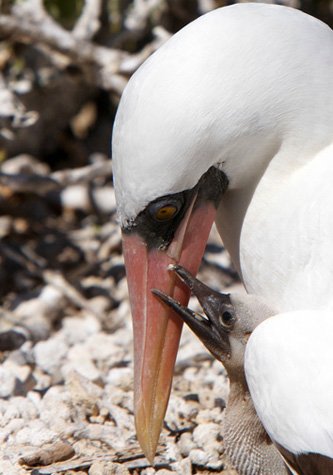 Genovesa has two sites to visit: Darwin Bay and Prince Phillips’ Steps.  The beach, were we land in the morning, is a white coral sand beach, a couple hundred yards in length, with sea lions and many birds nesting here and there, some very close to the trail. This morning we had the chance to land and immediately after, see the entire process of a baby swallow tailed gull coming out of the egg, just a couple of meters from us! What a fantastic experience for our group. Then, we saw dozens of red footed boobies, some nesting, others courting and some juveniles hanging near the nests waiting to be fed by their parents. On the bushes there were several young great frigate birds and we could easily see the main morphological characteristics of the great frigate species.