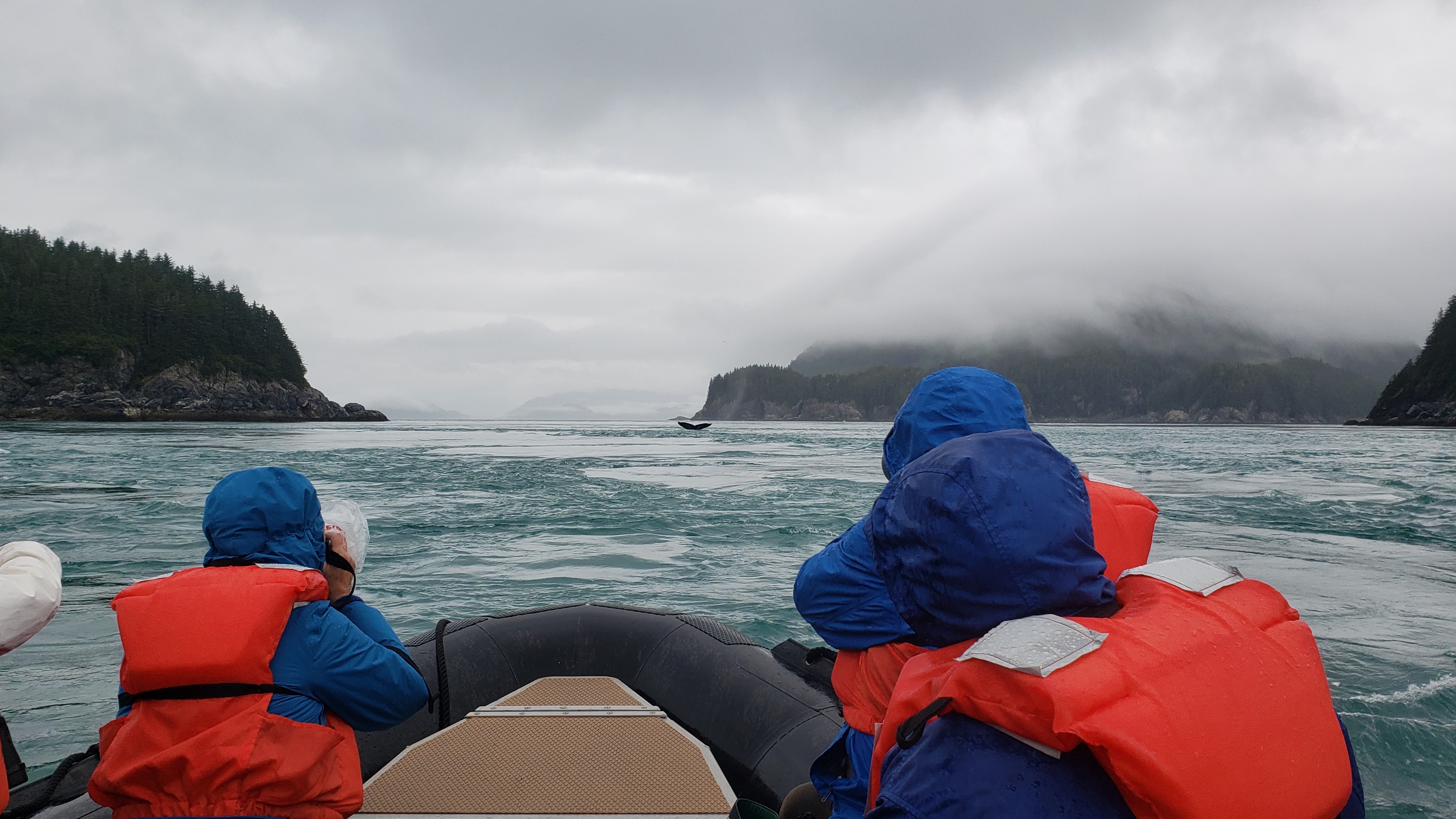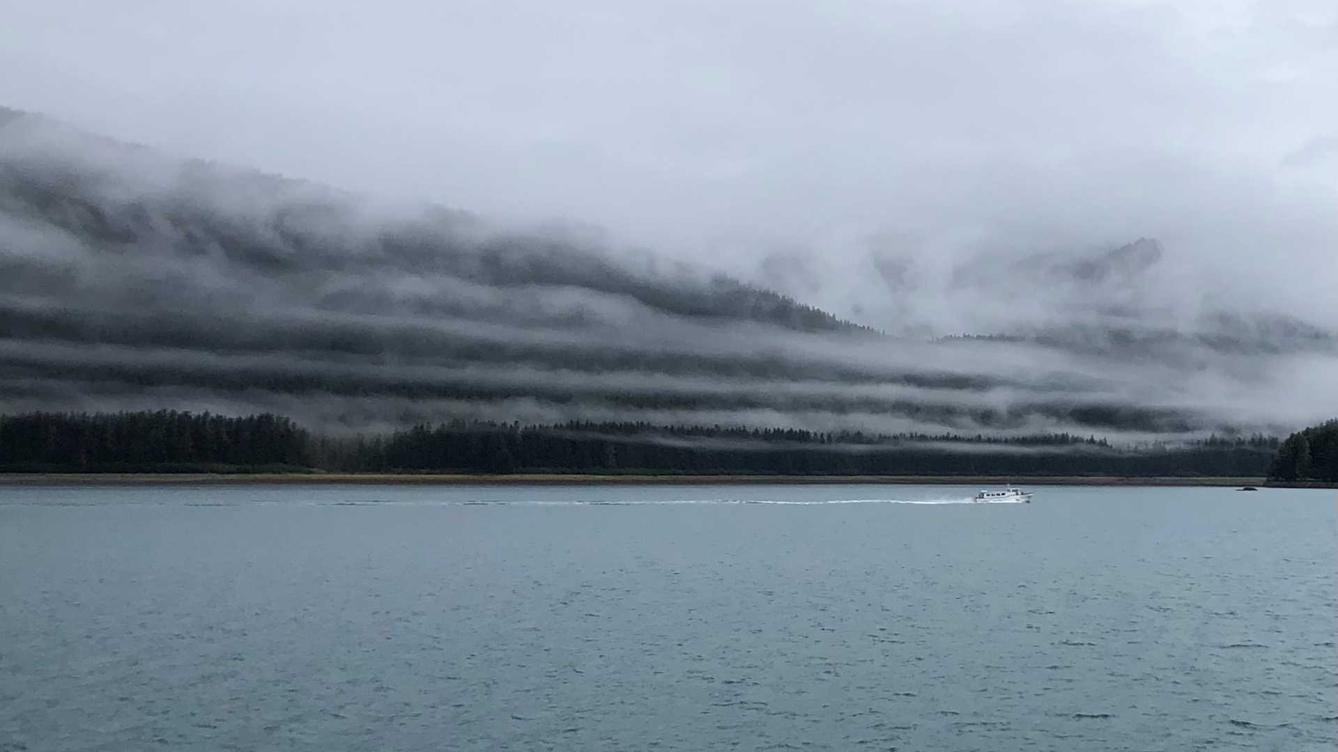Clouds created an artistic morning as we cruised from Stephens Passage into the emerald waters of Holkham Bay, and then further into Tracy Arm. The steep sides of the fjord are home to mountain goats, capable of moving along seemingly impossible terrain. Guests switched between sightseeing and attending talks on salmon and plankton. We stopped temporarily to collect and observe actual plankton. Copepods zipped across our screen. In the afternoon, Zodiac trips to the glacier gave us views of calving and splashes, along with the loud grumble of the ice cracking. We collected smaller pieces of ice, which could be centuries old. These allowed for some fun photography.