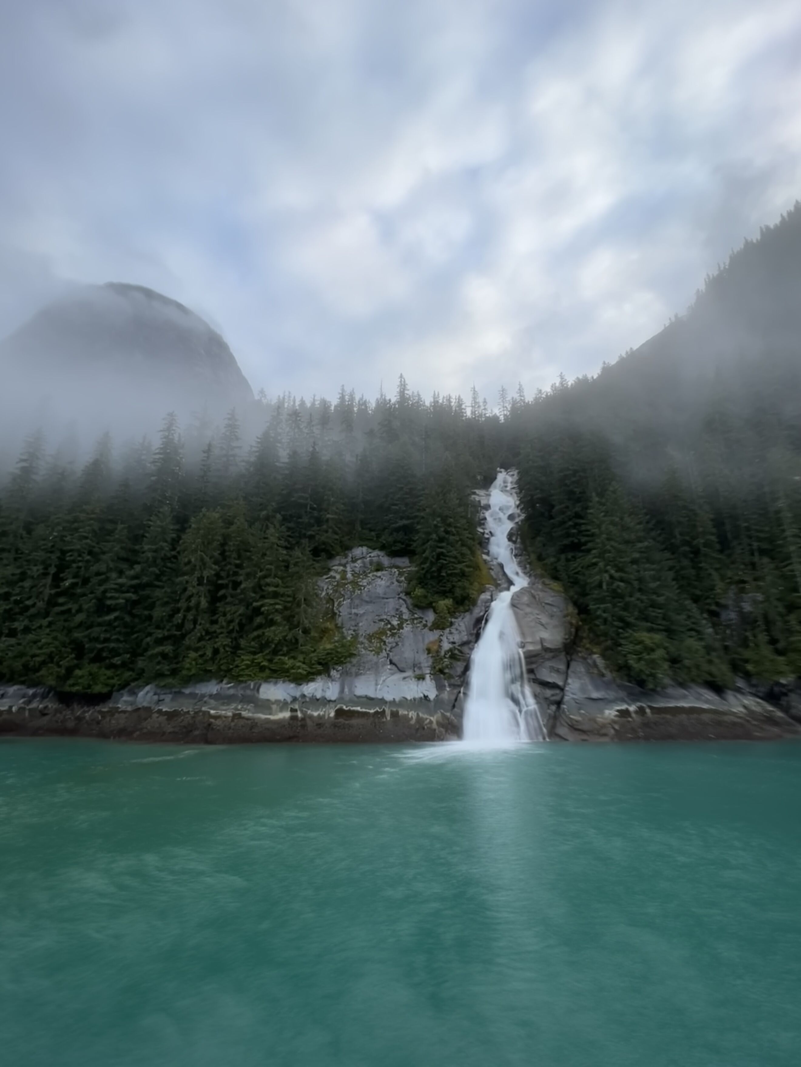 Today we woke up to a perfect day here in Southeast Alaska aboard National Geographic Sea Bird. There was a light cloud cover atop the beautiful fjord as we sailed into Tracy Arm Fjord. The steep walls on either side are breathtaking, and everyone gathered on the bow as we sailed up to Hole in the Wall Waterfall. We were able to learn about long exposure photography and worked on a number of beautiful photos. Due to the steep walls of the fjord, the ship was able to maneuver very close to the falls. We then sailed towards the glacier, and as we rounded the corner, the lighting from the sunrise was absolutely incredible.