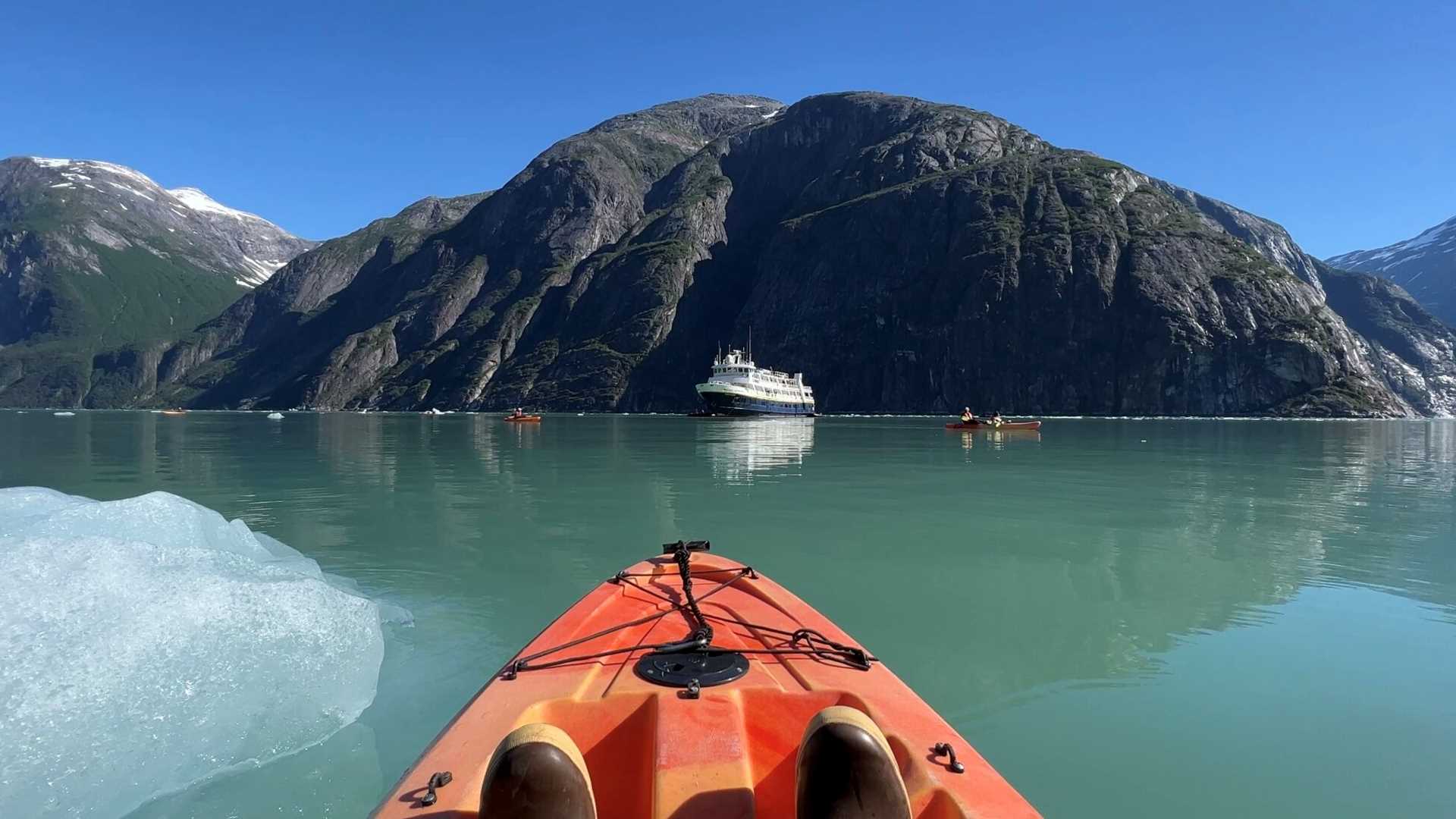 Today we woke up to a gorgeous day here in Southeast Alaska aboard National Geographic Sea Bird . The waters were glass calm as we enjoyed a delicious breakfast. Right as we were finishing up, the bridge spotted a lone male orca swimming around us. We all went out on the bow and were able to see the massive six-foot dorsal fin of the world’s largest dolphin species as it swam around the ship. After we watched this majestic creature fade into the distance, we began our sail up the breathtakingly beautiful Endicott Arm fjord. This area is hard to put into words. We sailed past icebergs with granite walls rising 3,000 feet out of the water directly on either side of the vessel. Waterfalls cascaded down from hidden snowfall and hanging glaciers. Glacial silt coming from the rock flows and mixes with the sea, creating a beautiful green hue in the ocean. Shayne, our Certified Photo Instructor, gave a presentation on smartphone photography and taught us all the settings for these incredible devices. It could not have come at a better time as the Dawes Glacier came into view. After a wonderful lunch, we headed out in our expedition landing crafts to explore the ice field in front of the glacier. Being this close to icebergs and the face of an active tidewater glacier is life changing. The blue of the ice, the crackling of icebergs, the haul outs of harbor seals, and the crash of calving is an experience that will not soon be forgotten. Back on the ship, we were treated to yet another amazing meal before heading into the lounge for a dual presentation by Naturalist Frankie Wilton and Certified Photo Instructor Shayne Sanders. They taught us about "The Story of Southeast Alaska" by talking about the important forest ecology and how to incorporate composition to capture this magic through the lens. It was an amazing first day, and we cannot wait for what is to come.