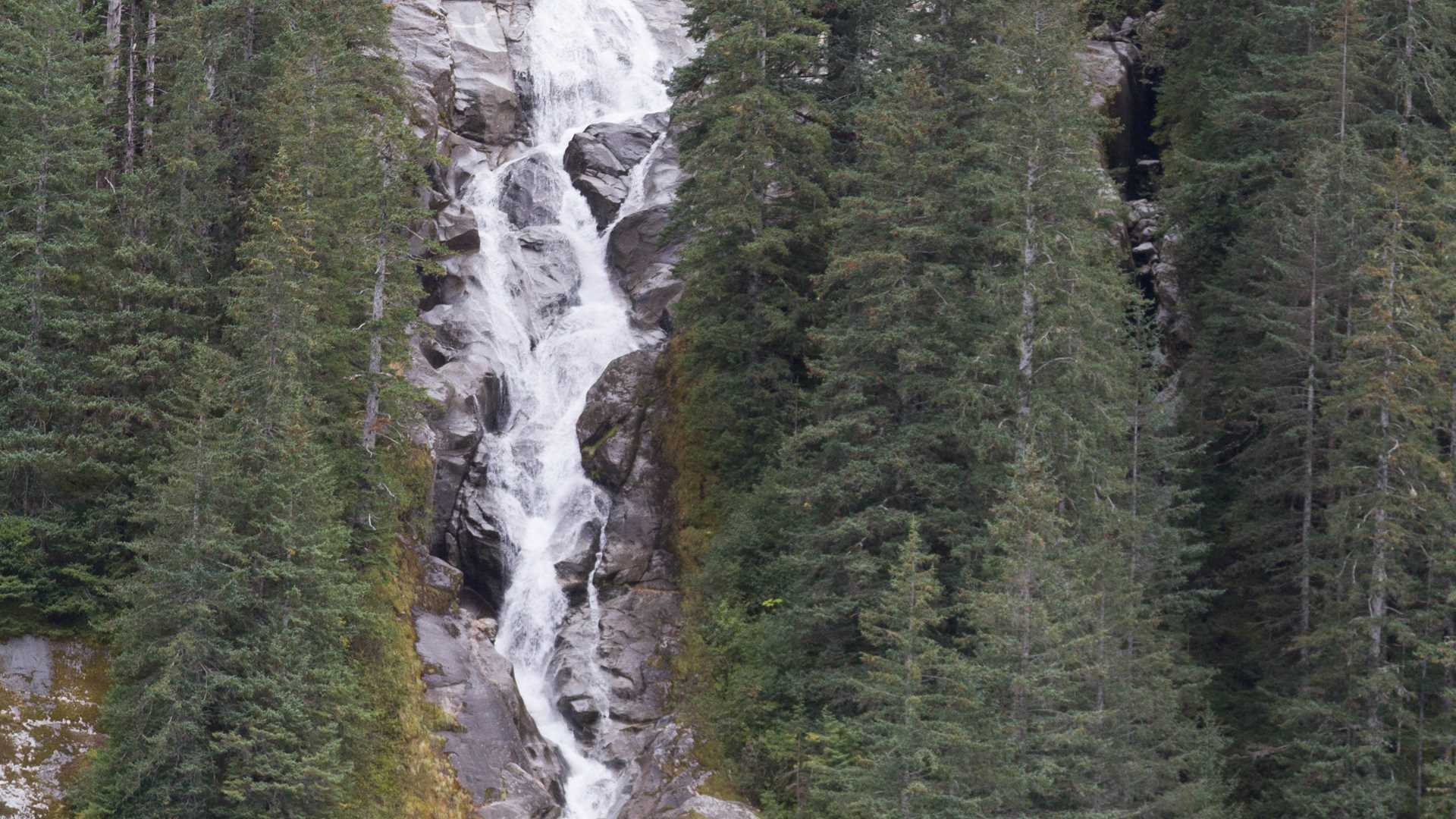 During the morning we traveled up the winding fjord of Tracy Arm.  All around was spectacular scenery rising a couple of thousand feet above the ship.  Along the way the bridge officers slowed to pull the ship slowly up to the rock walls of the fjord where waterfalls plunged over the near vertical rock walls of the fjord.  Cameras were always at hand as the scenery continually shifted and changed.