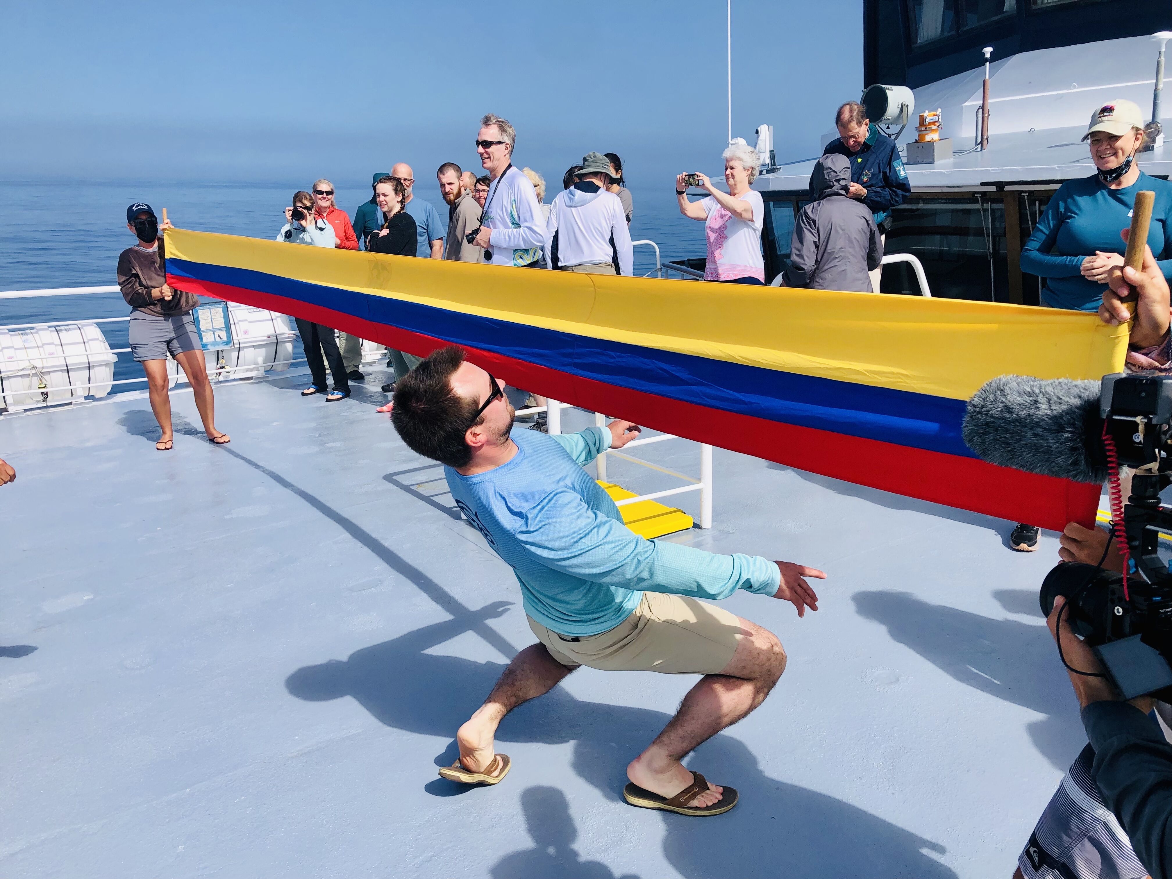 We spent our final day in the San Juan Islands, a beautiful archipelago wedged between Washington State and the south end of Vancouver Island. We began the day by docking in Friday Harbor to clear U.S. Customs before exploring the small town that has become famous across the world for its iconic whale watching. Over the last couple of decades, the resident southern orca whales that have come to define this place have shrunk in numbers due to a variety of factors, including overfishing, climate change, and depleted salmon habitats. Hard-working people at the Whale Research Center and the nearby whale museum are working hard to educate the public and enact laws to protect salmon habitats and provide more space for the orcas among the boat traffic and people that love them so much. Many of us took the opportunity to visit the whale museum near the dock, where the life histories and family trees of these amazing animals have been meticulously documented for decades. In the afternoon, we cruised a short distance north to Jones Island, a marine state park with a maze of trails and campsites framed by a gorgeous forest of cedar, fir, and madrone trees. To cap off our two-week excursion through the Inside Passage, we sailed through the last of the San Juan Islands while an epic sunset bid us farewell.
