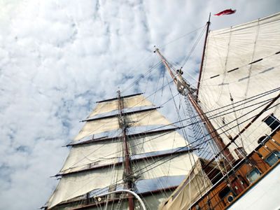 Sea Cloud sailed all night long. The wind was perfect to keep us under sail even when the crew rested. It was a peaceful night with gentle, rocking movement and the constant symphony of the Ionian Sea against the body of the ship. Stars shone and all the guests slept in peace, maybe dreaming about all the beauty seen already. Temples, theaters, cathedrals, aristocratic palaces, and beautiful landscapes. Now that we are sailing to the origin of what we saw in Sicily, it’s time to learn something more about olive oil. More than an ingredient used in the kitchen, it’s a medicine. And it’s thanks to the Greeks who spread the technique of cultivation all over the region that olive trees are today the heroes of the Mediterranean landscape. We heard a lecture titled: “Olive Oil, the flame of Greek Gods.” It was used as lamp oil for centuries, to light up the temples in Greece and colonized territories. Only much later was it used as an ingredient for cooking. After lunch, historian Robyn Woodward gave a presentation on “Mycenaeans, The Age of Heroes” so we could learn something else about the Greek civilization before we landed in Pylos, on the west side of Peloponnese. It was a classic day at sea until Expedition Leader Tom asked if anyone wanted to help close the sails. We’d been watching the crew maintain the sails for days; now it was out turn to help.