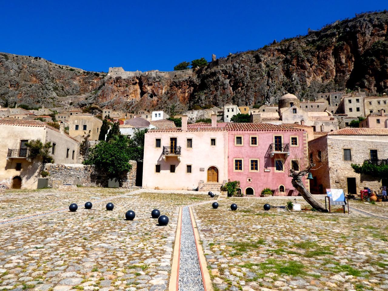 On this two-week voyage, we save the last day as an exploring day to adjust to the voyage thus far and the group interests to finish the trip with a crescendo. Since we’d had plenty of excellent sailing day and night across the Ionian Sea and the water was still too cool for an improvised beach day, we knew that this group would love a surprise stop at the stunning Greek rock of Monemvasia on the east side of the Peloponnesus. The offshore rock was inhabited in prehistoric times, and the medieval town of Monemvasia was founded in the 6th century. An arched bridge was built to connect it to the mainland in the late 19th century, but there are no roads or vehicles in the walled medieval city that is perched under the cliff face. No maps or guides are necessary, and we all enjoyed the morning winding through the labyrinthine streets and alleys. It was a stunning finale to a beautiful voyage.