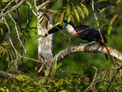 We embarked the skiffs to explore the shoreline of the Ucayali River, close to Belluda Caño. We took advantage of the good weather conditions to visit the nesting site of the red-bellied and blue and yellow macaws for second time. We were here just a few days ago, and the rain, combined with the wild nature of the birds, resulted in a couple brief sightings. Today, we had great sightings of both species of macaws under beautiful light!