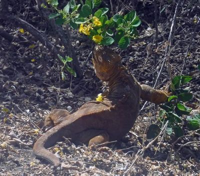 In Urbina Bay, one group of guests went for a two-mile exercise hike, while the majority went for a natural history walk around the forest. One of the most remarkable sights were juveniles of giant tortoises and the Galapagos land iguanas, two of the well suited reptiles to survive the dry low lands of the coasts of Galapagos. Along this walk we also found some land birds such as the famous Darwin finches, Galapagos mockingbirds and colorful yellow warblers. We ended up on a green sea turtle nesting beach where we could enjoy a quick swim before heading back to the National Geographic Islander for a session with our photography instructor on board.