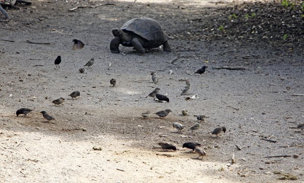 Darwin’s finches, mockingbirds, warblers and other birds were encountered as we walked along a narrow trail of sand with sides nicely decorated with plants of different sorts. Flowers were still in bloom and visited by innumerable insects in search of food in exchange for pollinating them.