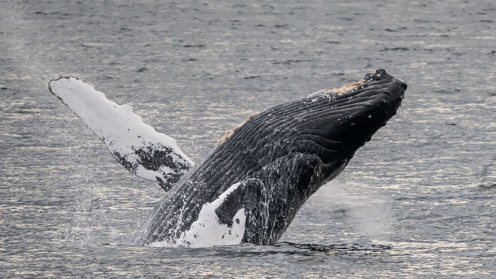 Our last morning in the wilderness brought us to the protected inlet of Ushk Bay. A humpback whale repeatedly breached, slamming its pectoral flipper on the surface of the water before its tail smashed the sea’s surface. Over and over, this extremely active whale leaped and twirled as we delighted in its performance.
