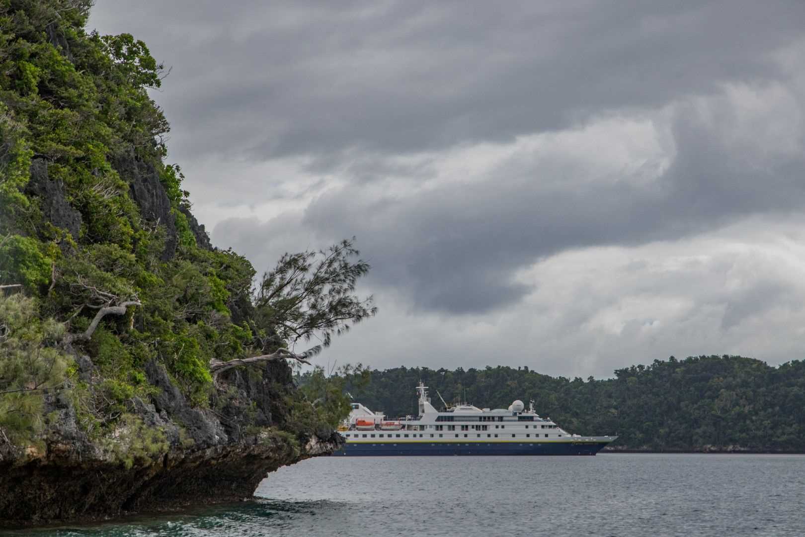 After a slight change to avoid weather conditions, National Geographic Orion arrived at the Bay Of Isles in the sunshine. This stunning group of limestone islands offered shelter and opportunities for stand up paddleboarding, kayaking, snorkeling, glass bottom Zodiacs and Zodiac cruising. The weather did eventually catch up with us in the late afternoon, but the rain didn’t dampen spirits. Even in the rain the views surrounding the ship were spectacular.
