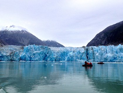 During lunch we arrived in  Arnarfjordur whose sides are composed of stacked layers of basalt. During the last Ice Age a gigantic glacier rasped and gouged the rock to form this  spectacular drowned u-shaped valley, at the head of which is the Dynjandi waterfall. It is aptly named The Thunderer. At 100 metres in height and 60 metres in width at its base, this is an impressive feature. The cascading water has eroded a series of rock basins, comparable to a number of rock steps, one below the other. We slowly made our way to the topmost platform. The thump of the water, the fine spray in the air, the verdant, lush carpet of mosses, the multi-coloured rocks, the grandeur and scale of the place, all combined to mesmerise. From our perch high above the valley floor, the vista was spectacular. Anchored in the fjords’ pond-calm waters our ship was ringed by kayakers.