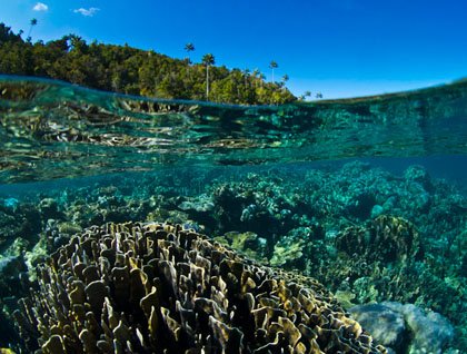 The first thing I saw when I left the National Geographic Orion this morning was a group of manta rays feeding in a current line. I was able to slip into the water and shoot some video and photos of these giants performing their feeding ballet. Raja is a great place for mantas, with strong currents, abundant food, and certain areas designated marine reserves. Then, we snorkeled on a pristine reef, filled with corals of every shape and color. Giant clams were tucked into various folds in the reef, their multihued mantles shining vibrantly. Of course, fish were swirling about. So many different species, attempting to put names to all of them is near impossible. All of this, with postcard perfect mushroom shaped islands, and I couldn’t really think of any place better.