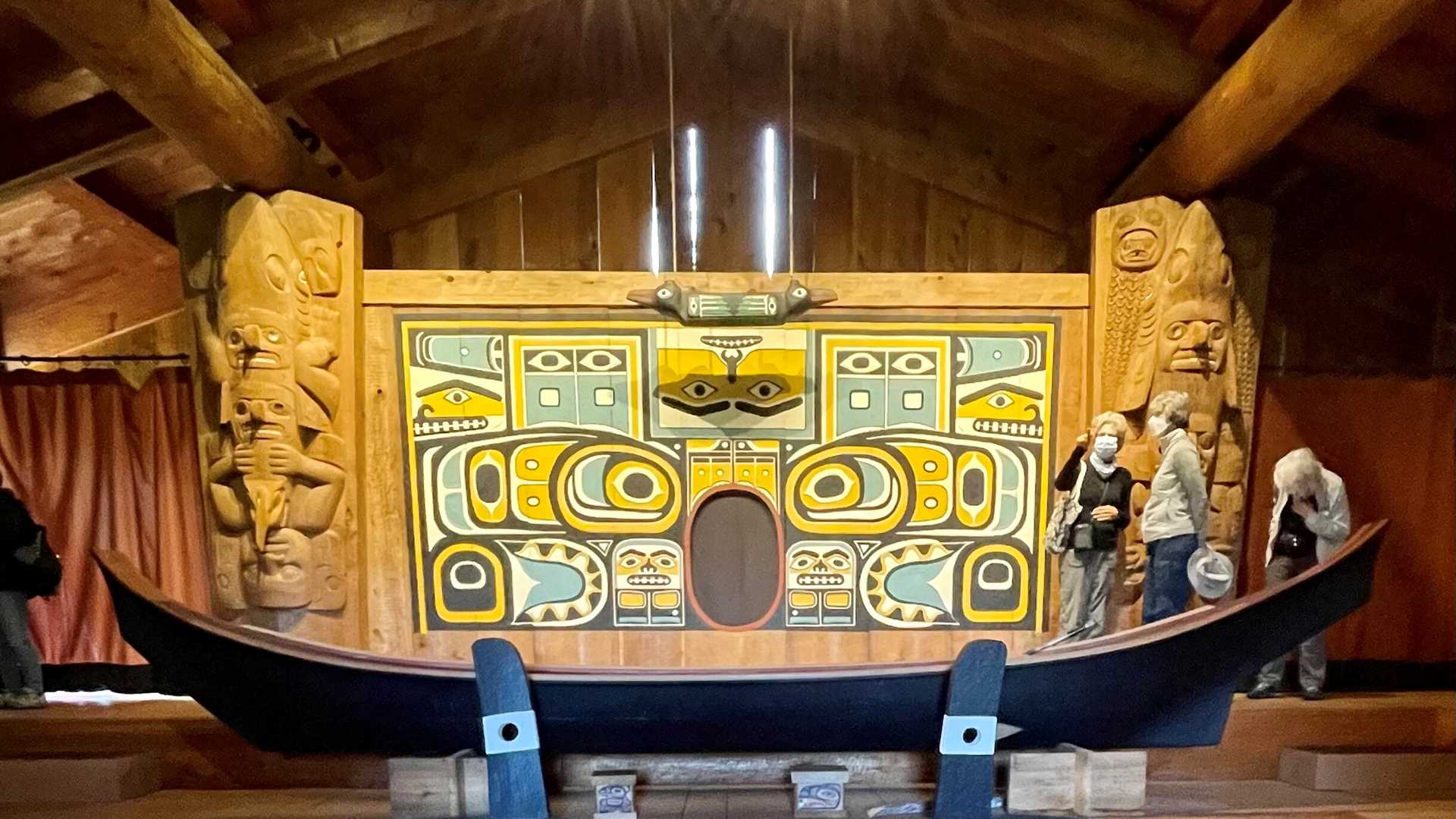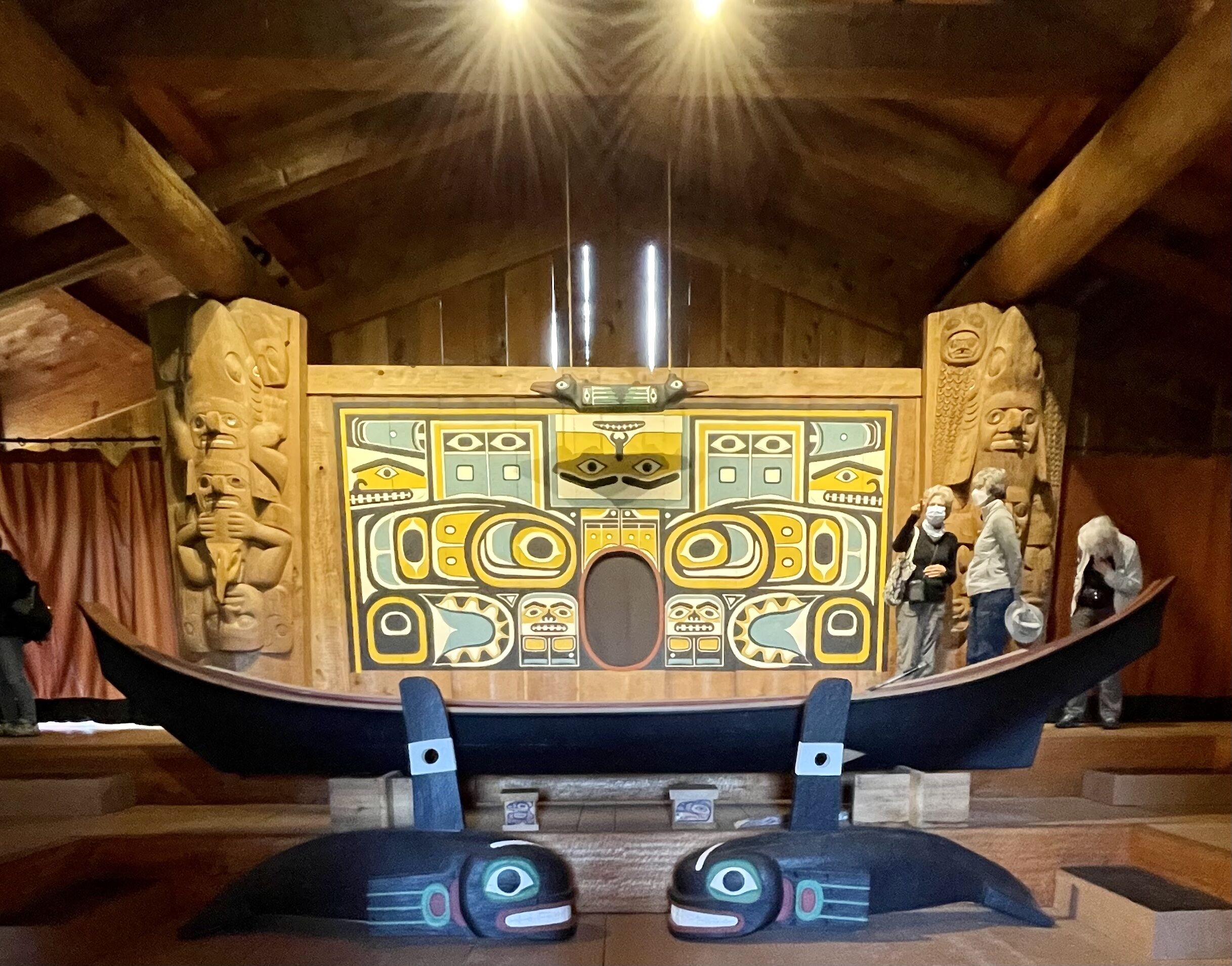 Another sunny day in Southeast Alaska! This morning we docked in the small Alaskan frontier town of Wrangell (pop. 2,500) before heading ashore for multiple excursions. Guests who opted to stay in town had the pleasure of visiting Chief Shakes Tribal House. We got to take in the wonderful cedar aroma of the Clan House while a local Tlingit woman shared the history as well as the story of one of the house’s inner totems. Afterwards we took a delightful trip to the beach where it was time to hunt for petroglyphs. Petroglyph Beach in Wrangell has over 40 petroglyphs scattered along the shore and searching for them was a real treat. With such nice weather, some guests then opted for a hike up Mt. Dewey through a hemlock forest with our naturalist Steve. For guests who wanted further flung adventure, a jet boat tour up the Stikine River was just the ticket! Led by local guides, guests ventured up the Stikine River to Shakes Lake which was still icy. Some guests even saw a bear on the way!