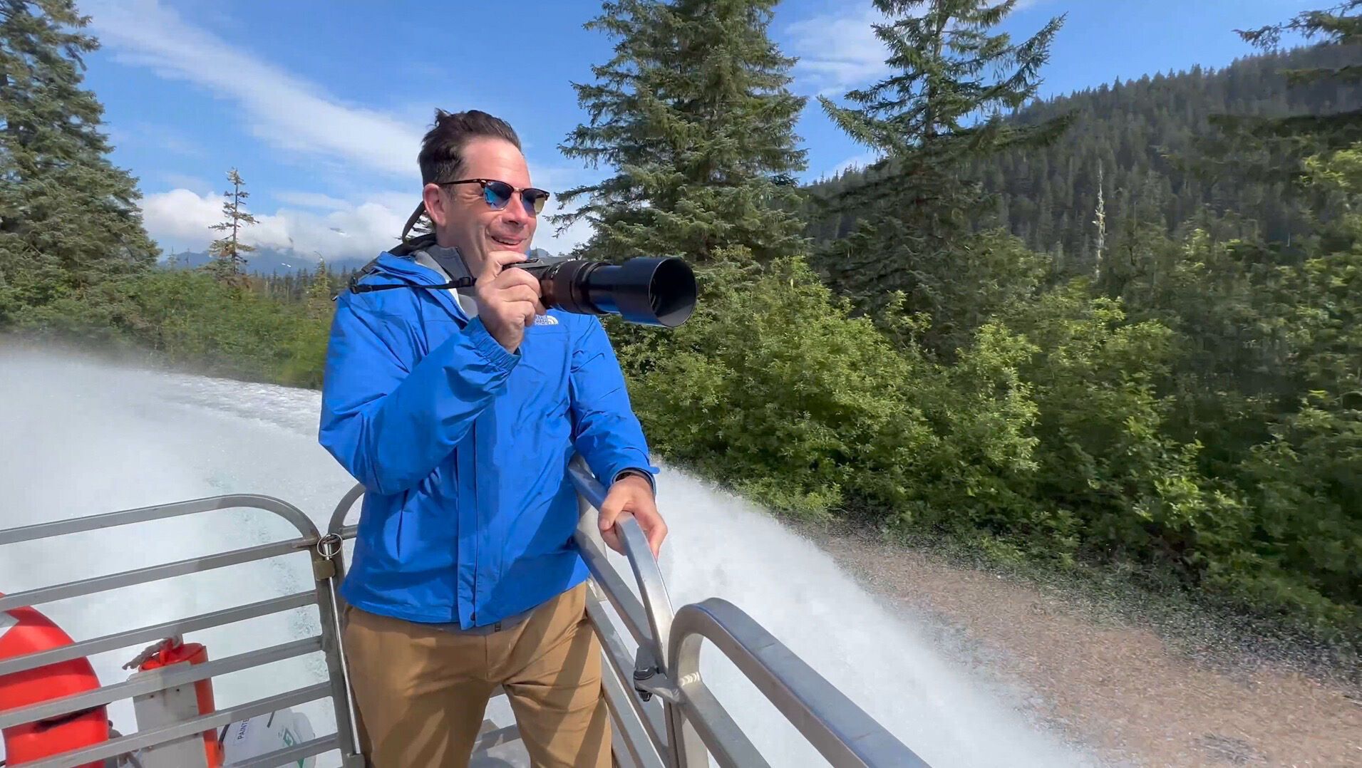 Today we woke to still water, overcast skies and the quaint dock fronting the small town of Wrangell, Alaska. After breakfast some guests opted for a trip up the Stikine River via jet boat. The Stikine is the largest river to cross through the Coastal Mountains into Canada, a large amount of this water flowing from the huge Stikine icefield. Jetboats glided past cottonwood and Sitka spruce up to large tidal flats filled with glacial till. Guests enjoyed threading their way through this complex system of braided channels, wetlands, islands, mud and grass flats, encountering ice washed downstream from the glacier. Running the flats was the best part for many—the pilot, James, had been exploring these flats since he was 11 years old!